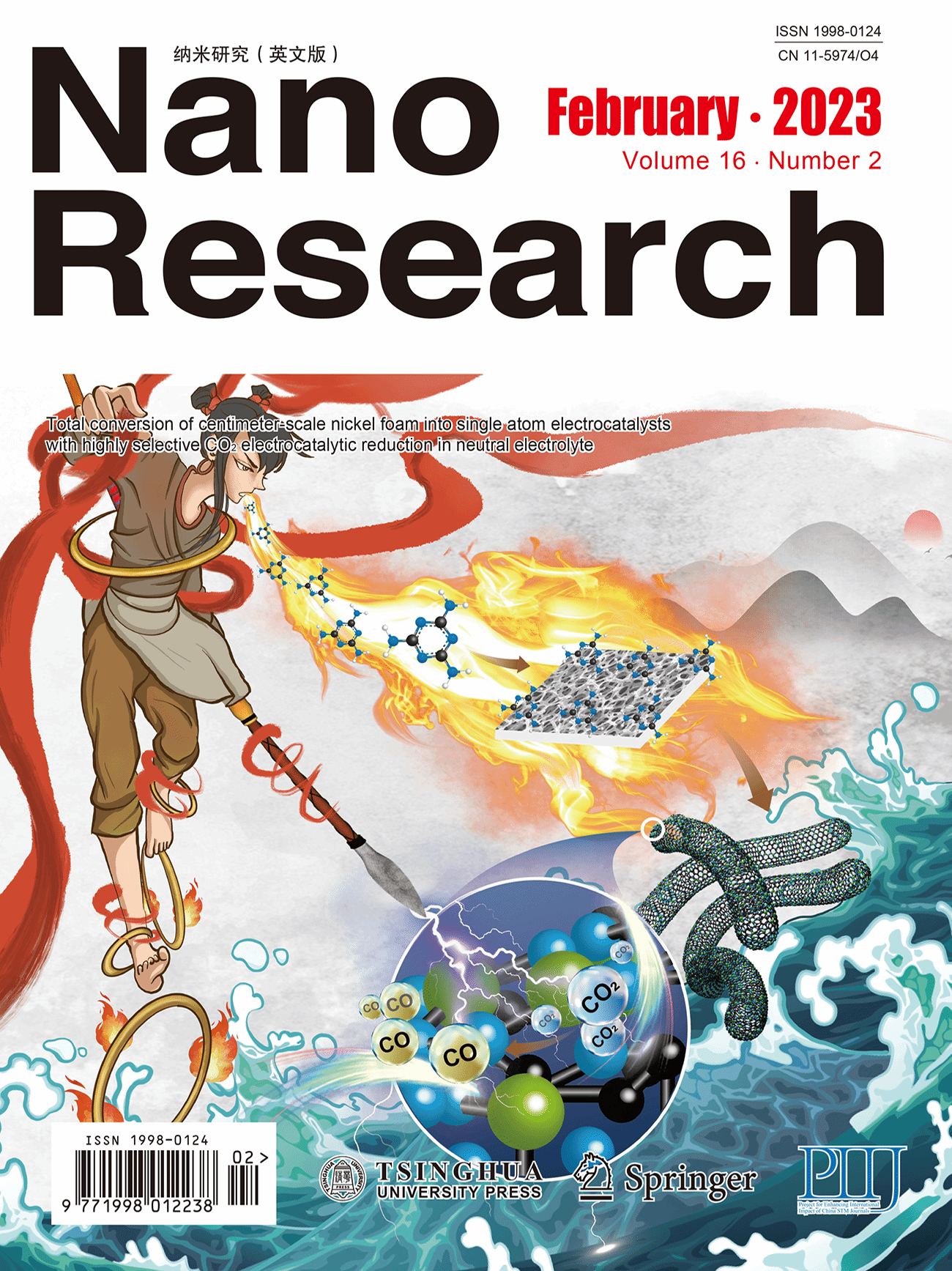 (9) Fan Qikui, Gao Pengfei, Ren Shan, Qu Yunteng,* Kong chuncai,* Yang Jian,* Wu Yuen. Total conversion of centimeter-scale nickel foam into single atom electrocatalysts with highly selective CO2 electrocatalytic reduction in neutral electrolyte. Nano Research, 2023, 16(2): 2003-2010.