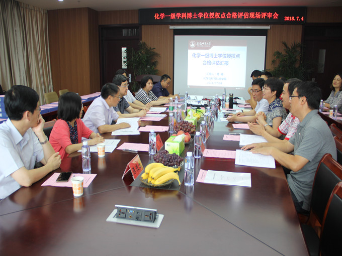 化学一级学科博士学位授权点近年来的发展建设成绩。在肯定成就的同时,评估专家组提出诊断式评议意见,希望进一步凝练学科特色,加强学科团队建设,加强高层次人才引进与培养,进一步提高招生人数及生源质量,加强研究生国际合作培养与交流,实现学位点跨越式发展。
