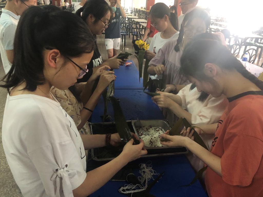 本网讯(18材化二班郑瑶)2018级材料化学专业在6月5号下午于二食堂二楼一起组织了端午节活动。活动内容为包粽子,装香囊,旨在通过亲手制作感受端午节的魅力。