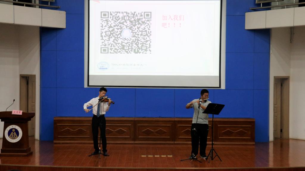 紧接着,团委学生会主席团、部长团、大艺团、体育团依次上台发言,分别从团委学生会各部门的特点、工作职能、特色活动、招新要求等方面向2019级新生进行了详细介绍。随后,长笛小提琴合奏《way back home》重磅上演,笛声空灵悠扬、小提琴婉转悠长,西洋乐器与东方音乐火花四溢,绘就一篇绝美华章,让现场的观众痴迷不已。一首《记得》让全场沦陷,潘岩、程艺青同学饱含深情,带领同学品尝了青春的苦涩。最后,51吃瓜网