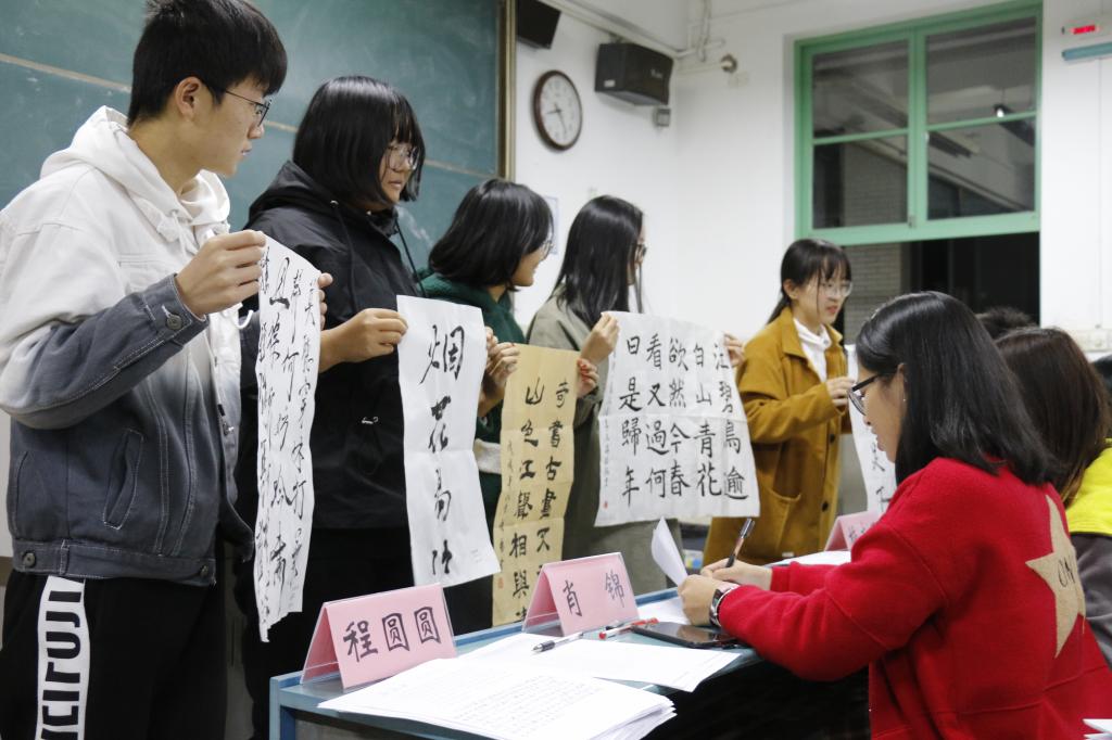 于11月18日在行知楼2010302组织开展了以“笔尖论道见苍劲,翰墨传魂闻书香”为主题的“三字”书法艺术比赛,由团委学生会成员担任本次比赛的评委。