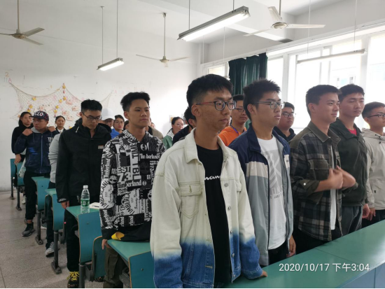 2020年10月17日,由我班文娱委员黄子洋同学组织大家学习团歌,共唱团歌,在团歌的激情澎湃中体会团思想和团精神。