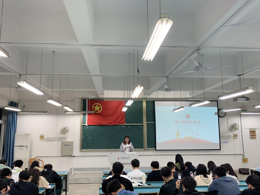 沈馨苑首先领学了《论中国共产党历史》部分章节的内容,胡蒙霞和程松波作为团员青年代表进行了发言。沈馨苑公布班级团员民主评议结果及团支部满意度测评情况后,对获评优秀团员的同学表示祝贺,鼓励同学们再接再厉。各团小组代表依次上台发言,对上一学期的工作做出总结以及对未来工作的计划和展望,也分享对党史的理解与感悟。最后,支部团员对支委会进行了满意度调查投票。学院团委委员沙凝对本次组织生活会进行总结点评,她号召大家积极向党组织靠拢,用实际行动践行初心和使命。