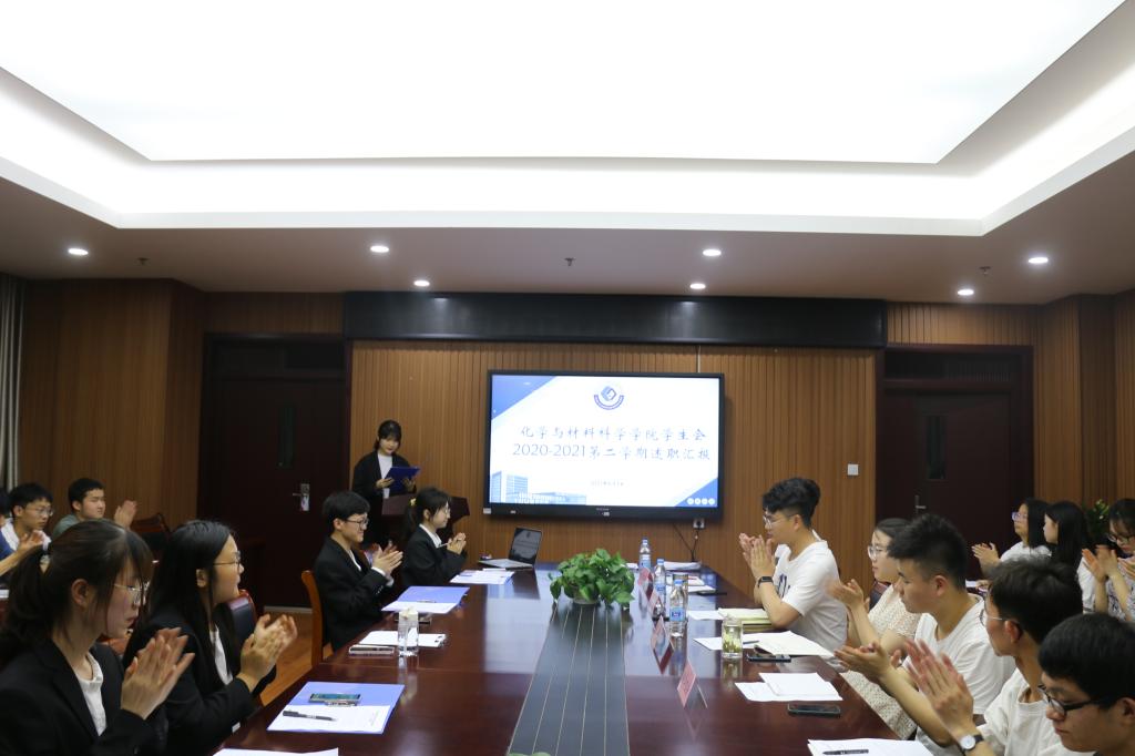 学生会于6月1日晚七点半在礼勤楼702室召开了2020-2021学年第二学期述职汇报会。出席本次会议的有院团委书记陶勇、团委副书记陈静、校学生会执行主席季行健及学生会全体成员,本次述职汇报会由文体部程子妍主持。