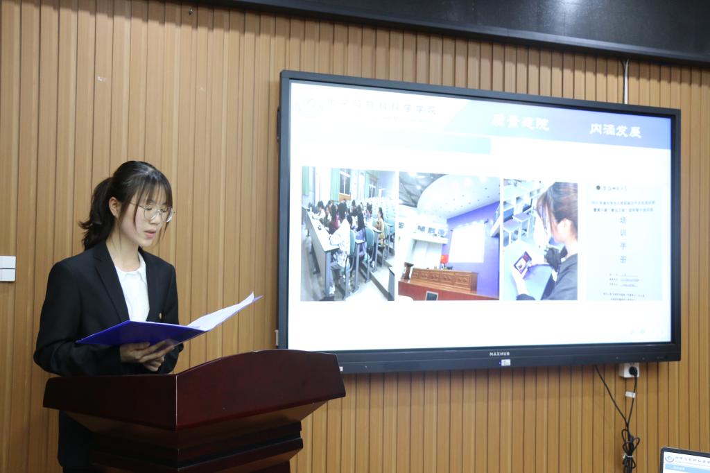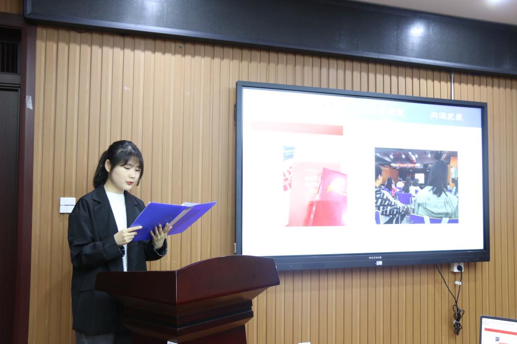 在郭晶晶介绍完本学期院学生会的活动开展及个人工作总结后,各部门部长依次围绕政治引领、学习成果、工作成效等五个方面依次进行述职,详细介绍了本学期各自部门组织开展的一系列特色活动,并对举办过程中存在的问题进行总结反思。