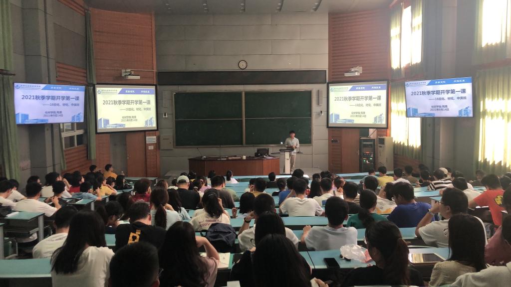 )为做好学生开学后思政教育工作,落实好常态化疫情防控下校园管理规定、卫生安全保障以及引导学生做好未来规划,辅导员陶勇于2021年9月14日下午在2010105教室为2018级应用化学、材料化学、化学中外合作专业主持召开了2021年秋季学期开学第一课。