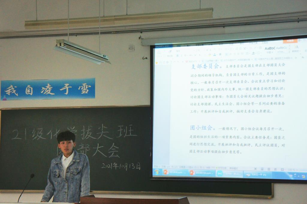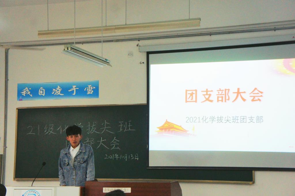 21级化学拔尖班开展了第一次支部团员大会。本次大会由班级团支部书记孙世杰主持,以“请党放心,强国有我”为主题,带领同学们学党史、悟思想,更加坚定的学习贯彻党的创新理论,明确同学们作为新时代新青年的使命和责任。会上还进行了支部委员会委员选举,通过同学发表竞选演讲、民主投票的形式,选举产生了三名支部委员会委员,增强了同学们之间的组织力和凝聚力。