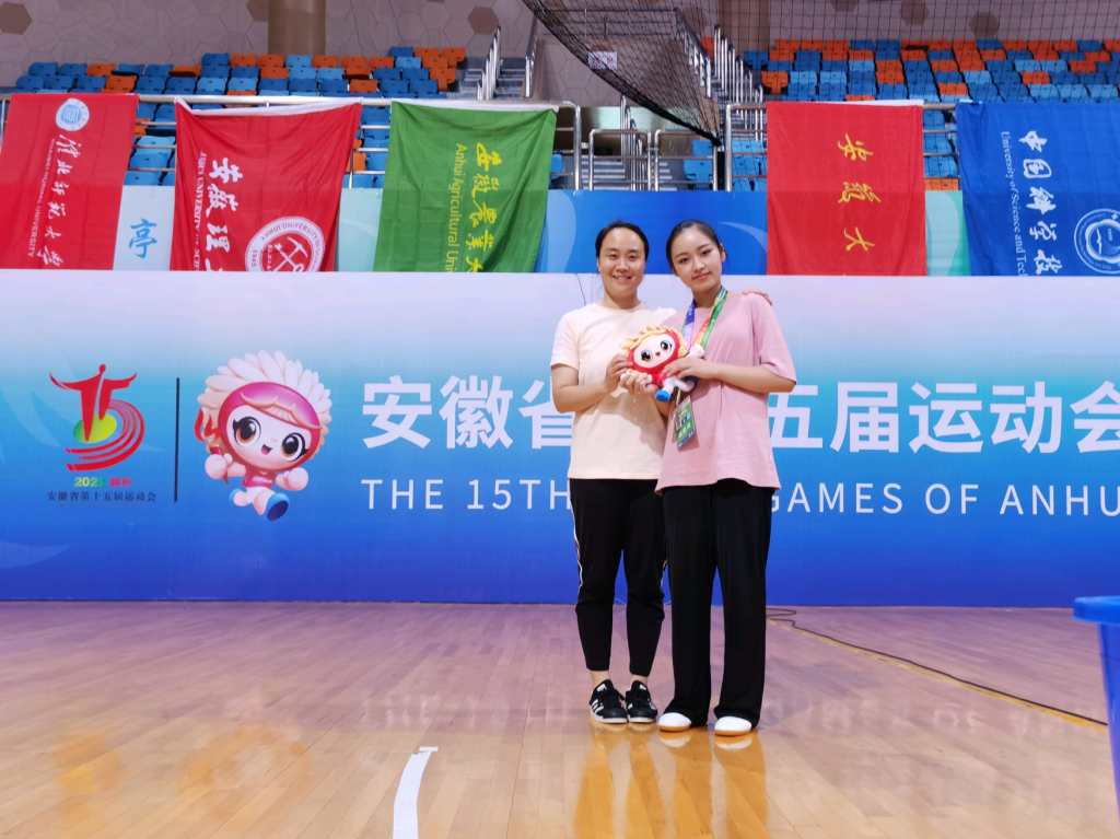 2020级应用化学专业陈静蕾在安徽省第十五届运动会高校武术比赛女子甲组自选太极剑比赛中荣获第二名,该比赛在滁州市高教科创城文体中心手球馆进行。
