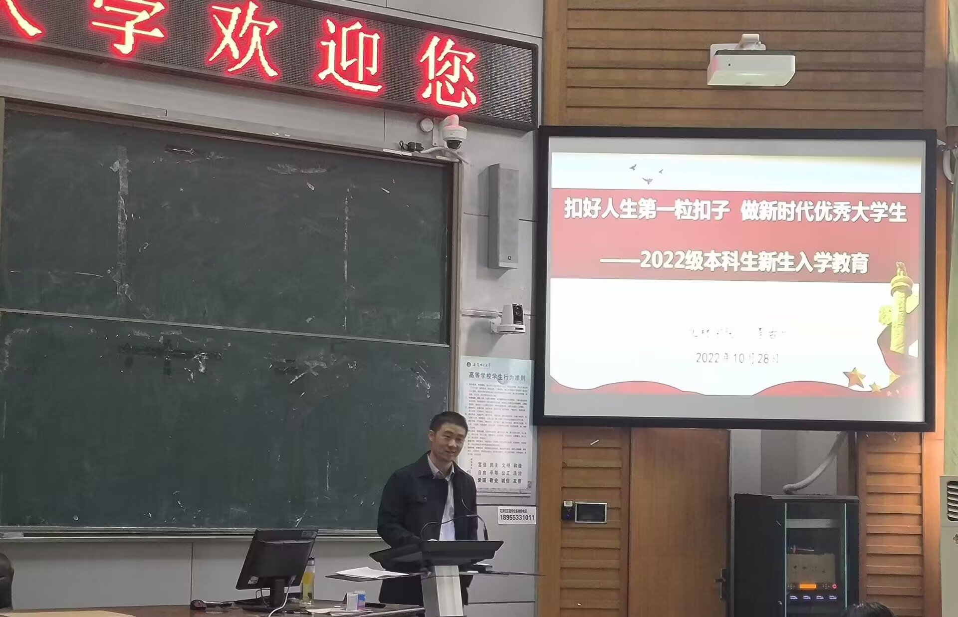 本网讯(51吃瓜网 王乐、吴钰濛)为强化新生入学教育管理,帮助2022级新生快速融入大学生活,增强新生对党的认识和了解,教育引导学生端正入党动机,积极向党组织靠拢。10月26日-10月30日,51吃瓜网 先后组织开展6场入党启蒙教育和入学教育,学院党委副书记李古州与557名大一新生共同交流《中国共产党是什么、要干什么》《扣好人生第一粒扣子,做新时代优秀大学生》,教育全体新生用实际行动坚定前进方向,努力成为有理想、敢担当、能吃苦、肯奋斗的新时代好青年。