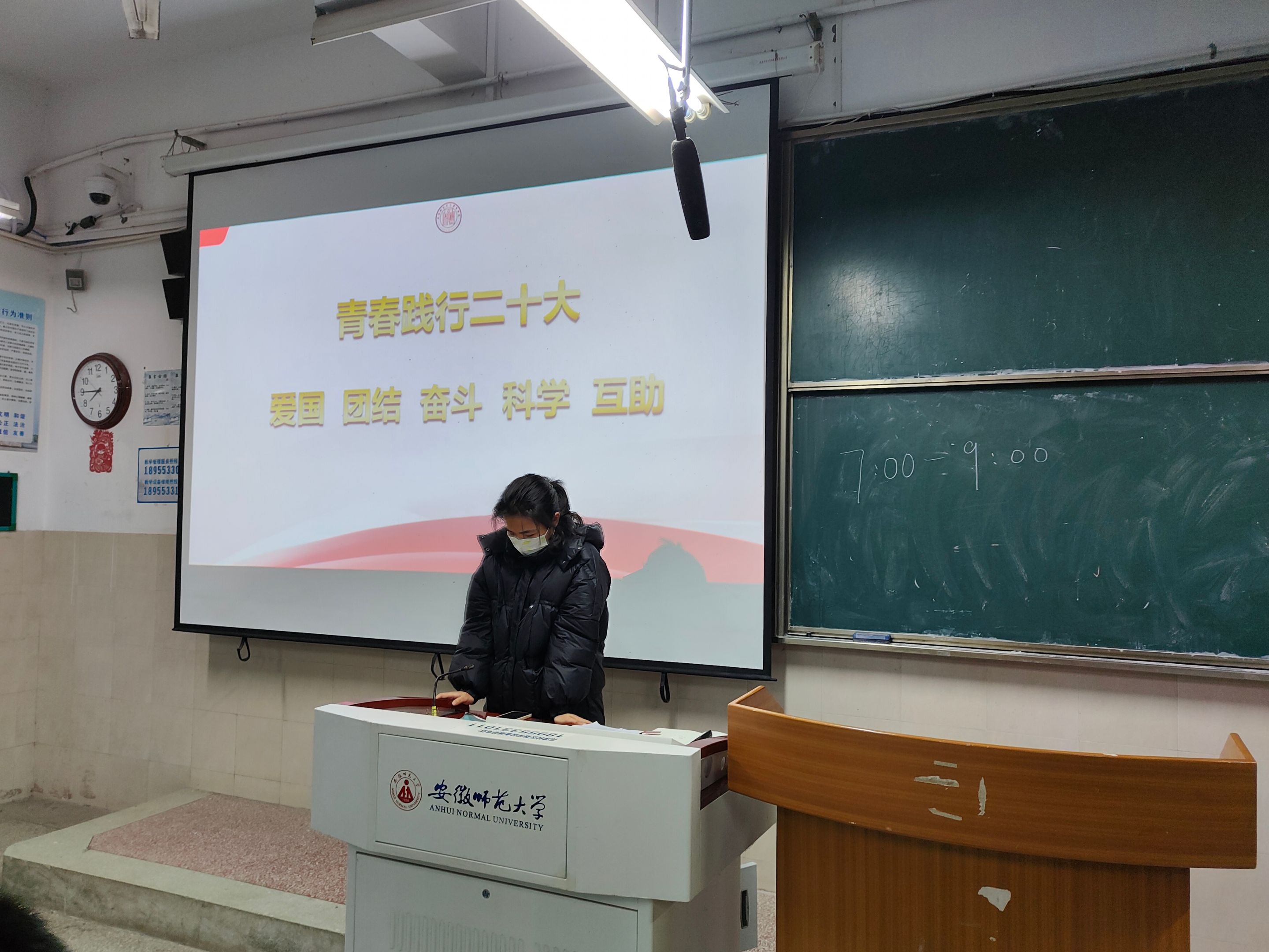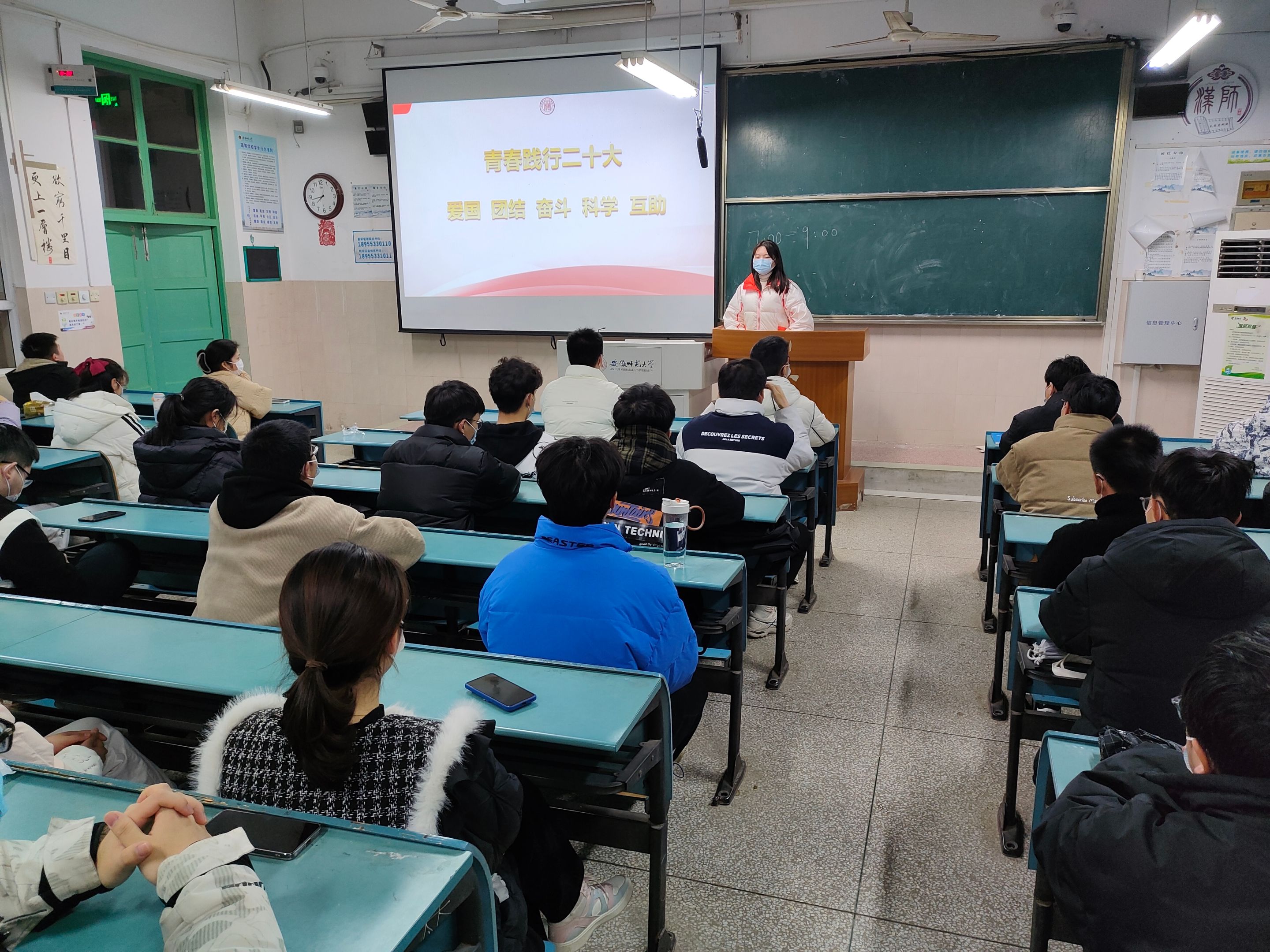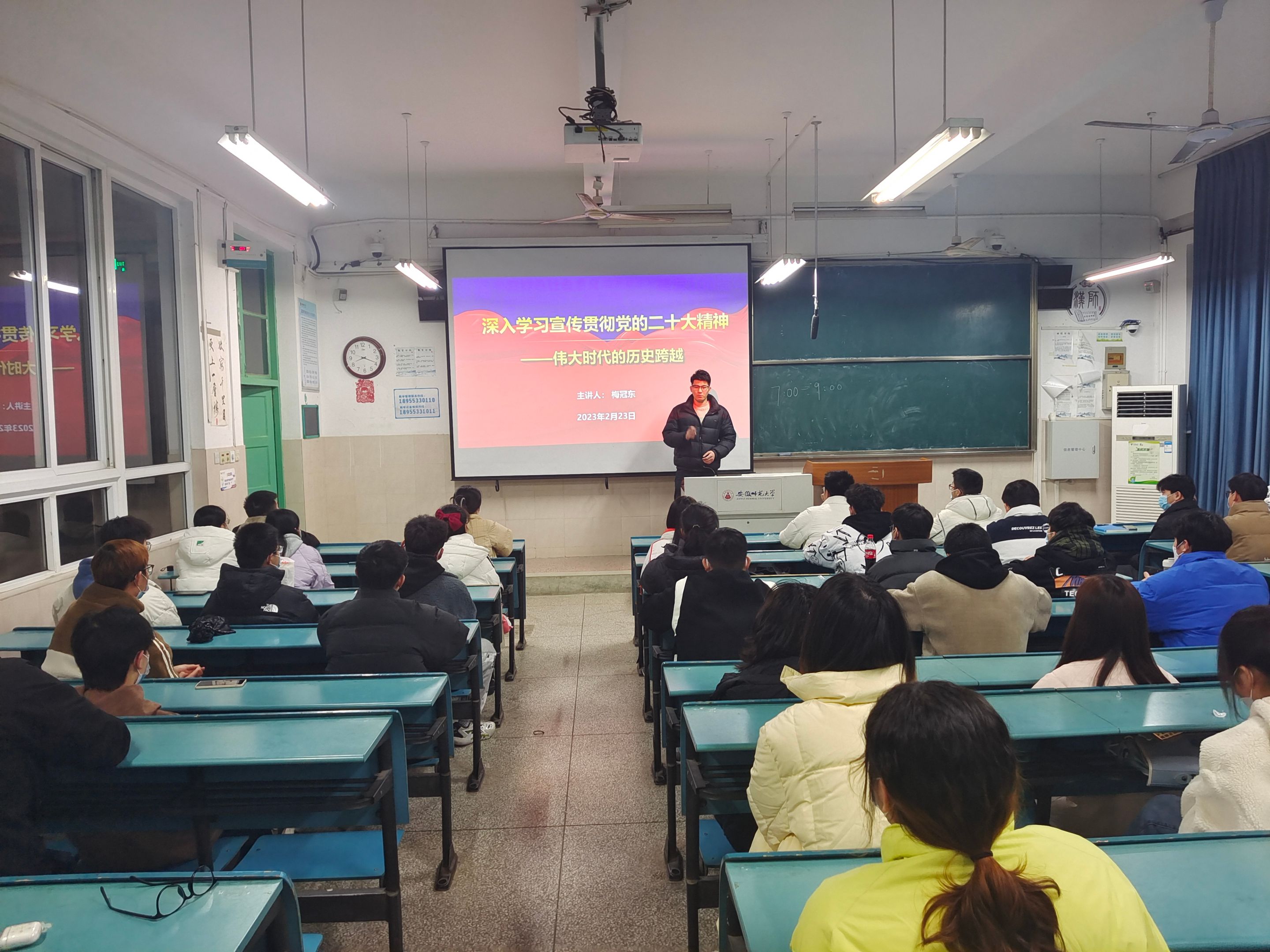 姚安然、梅冠东)为深入学习宣传贯彻党的二十大精神,引导学生坚定不移听党话、跟党走。2月22日、23日,辅导员梅冠东老师分别在2050104、2050102教室为2021级应用化学、材料化学、化学工程与工艺专业全体同学召开“青春践行二十大”主题教育班会。