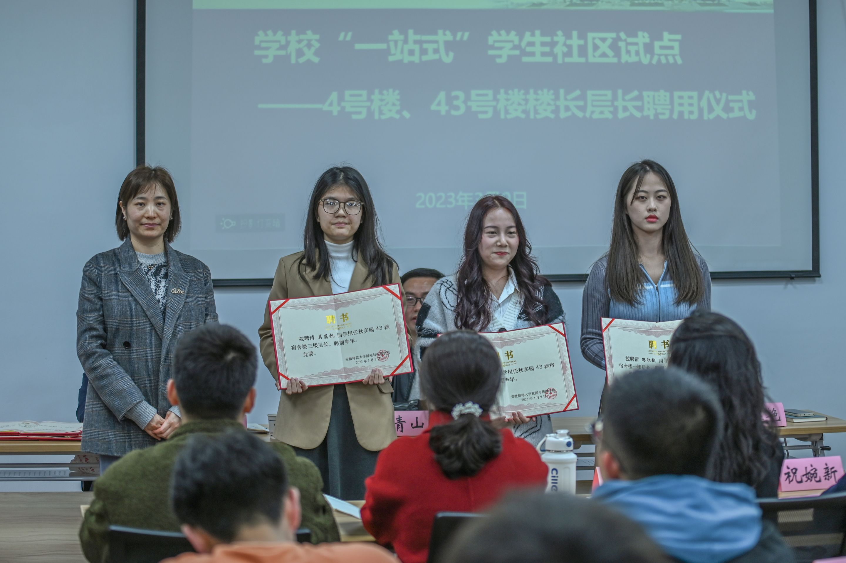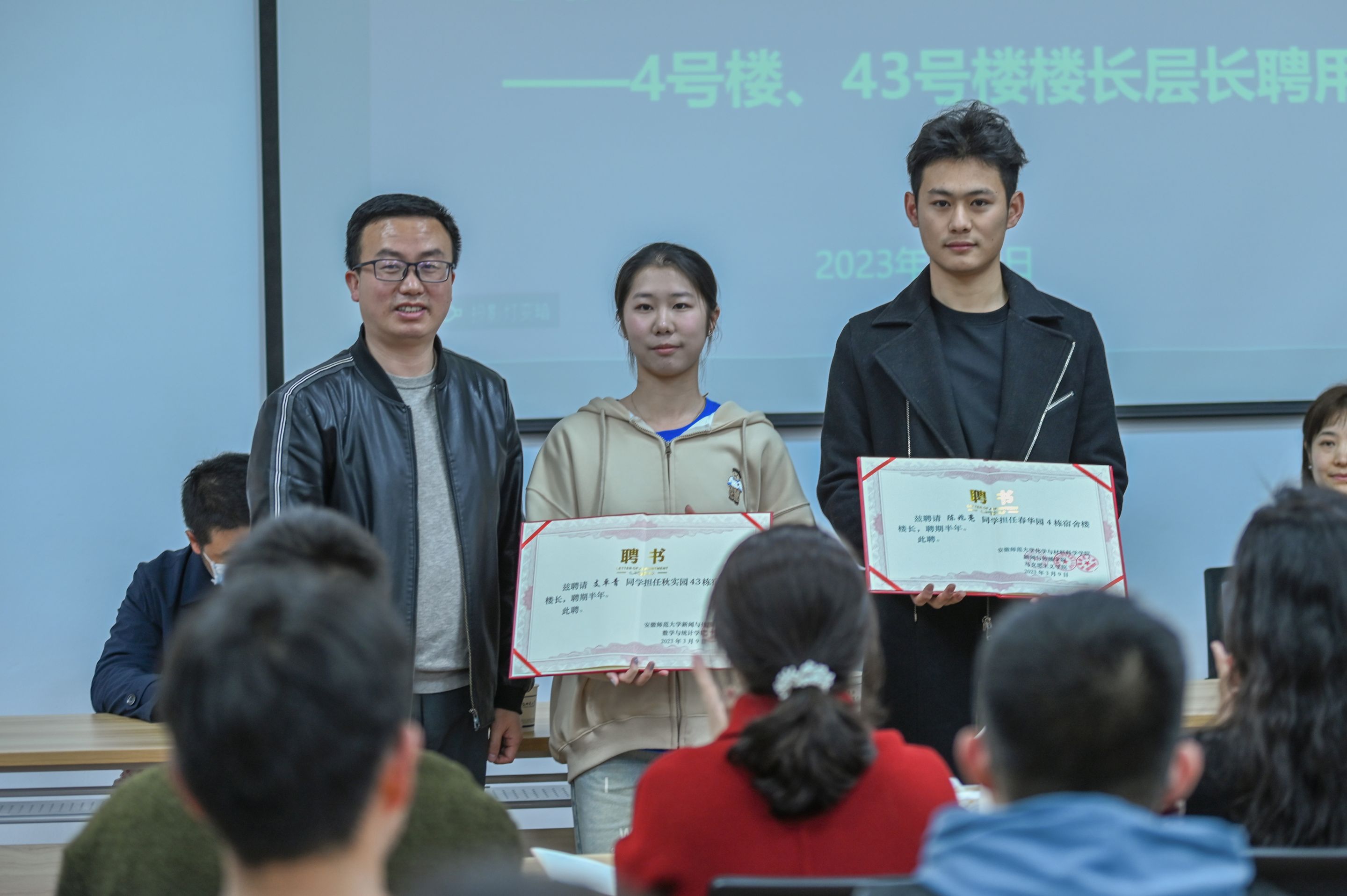 、新传学院、马克思主义学院联合召开“一站式”学生社区综合管理模式建设试点会议暨4号楼、43号楼楼长层长聘任仪式。马克思主义学院党委副书记刘玉艳、新闻与传播学院党委副书记吴青山、51吃瓜网