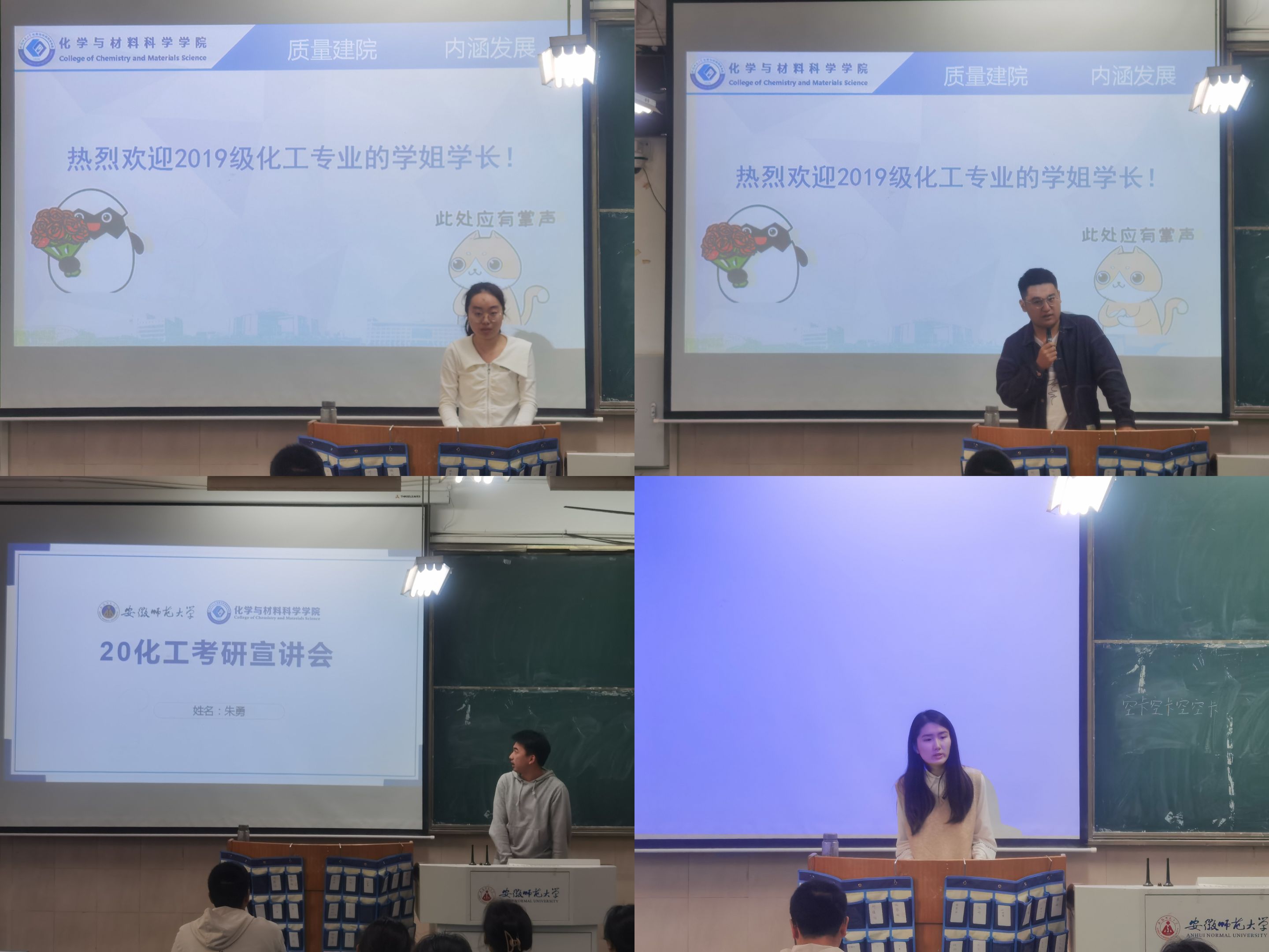 随后,辅导员于洪翔以前期摸排的班级考研就业意向数据为出发点,开展考研就业经验的分享与交流。本次交流分享会邀请到了2019级化学工程与工艺专业的朱勇、李明皓、马后恒、云莎莎与况子寒五位同学。云莎莎同学就保研的流程、材料准备、时间安排与应战心态等方面做出了详细分享;朱勇、李明皓与马后恒同学就考研的前期信息搜集与择校问题、中期的课程安排与学习规划、后期的思想与心态方面做出了精彩生动的分享交流;况子寒同学热情地分享了就业与考公的经验,包括强调简历的重要性,求职的笔面试过程与细节,考公的岗位选择与准备过程等方面。