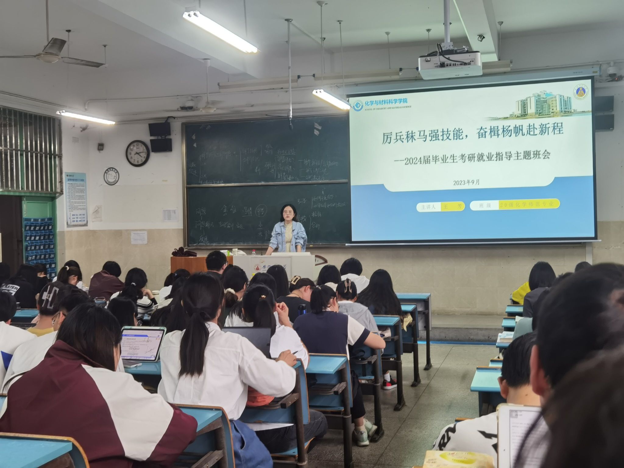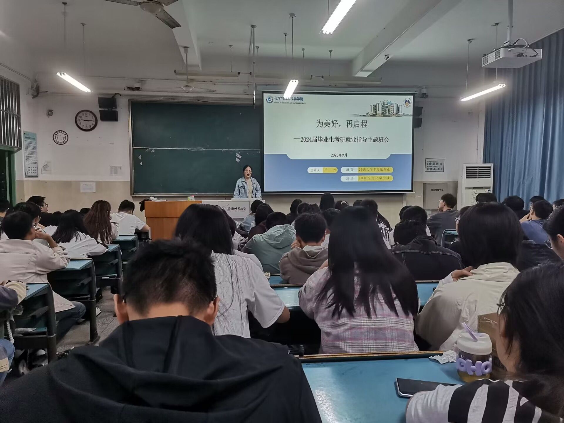陶佳佳 王芳)为了详细指导学生填写完善2024届毕业生资源统计信息,确保顺利升学和就业后档案顺利转出;同时在考研的关键时刻、就业的黄金时期,督促提醒学生坚定考研、积极就业,指导学生面试技巧,帮助学生缓解考研压力,9月21日下午和晚上于行知楼2020301教室先后召开了关于2024届毕业生考研、就业指导的主题班会,会议由辅导员王芳老师主持会议,20级化学师范专业和20级化学拔尖人才班、应用化学专业全体同学参加了本次班会。