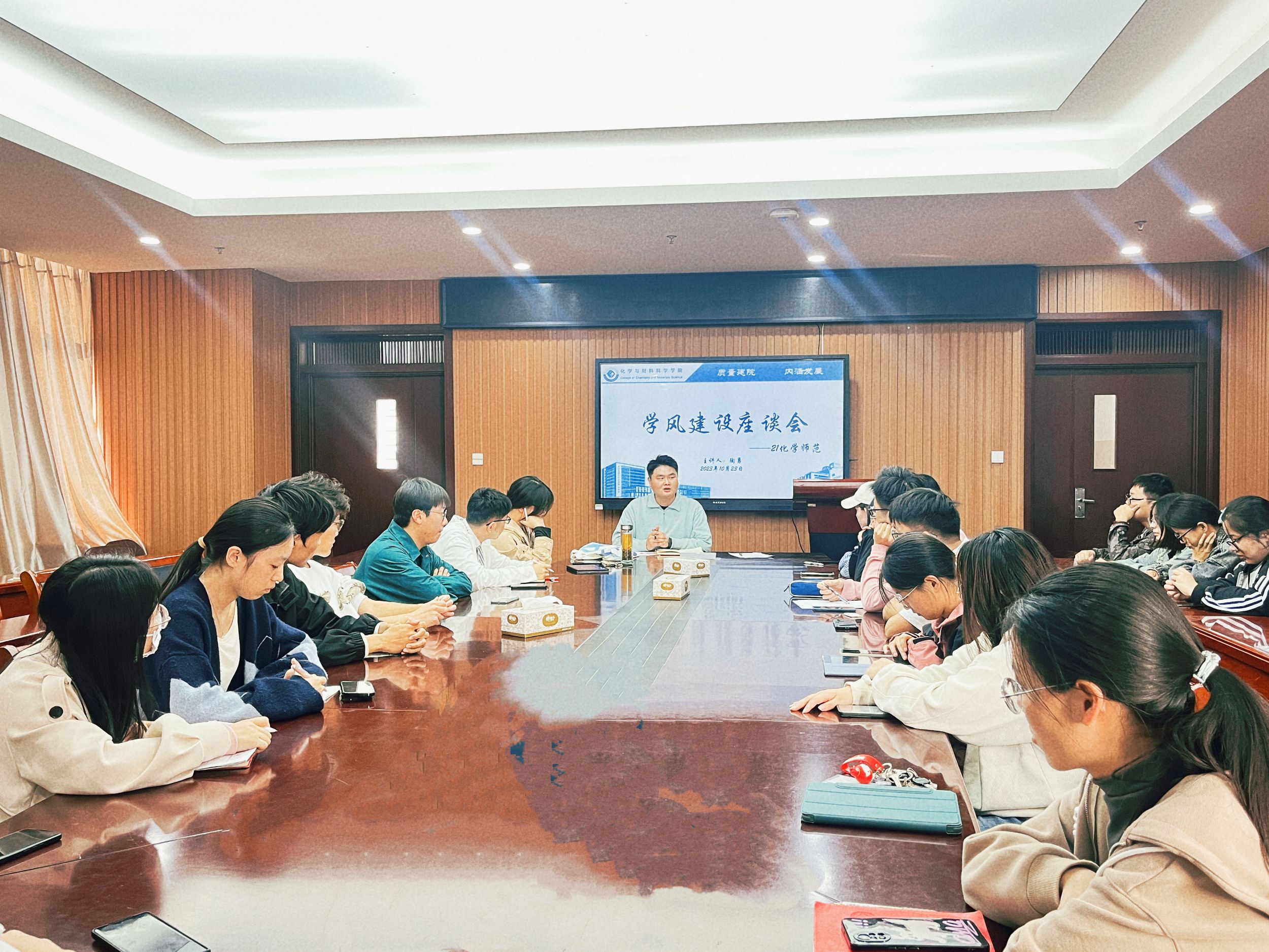 大学生护航行动计划》号召,着力解决学生学业发展、身心健康等方面面临的实际问题,持续推进我院学风建设,营造优良学习氛围,2023年10月23日下午在礼勤楼702会议室,辅导员陶勇老师为2021级化学师范专业部分学业困难学生开展学风建设专题座谈会,各班级班长、学习委员列席会议。