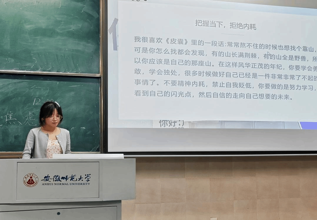 有的班级秉持着“走下网络、走出宿舍、走向操场”的理念开展了心理团辅与素质拓展活动,在阳光中挥洒汗水,在分工协作中感受团队的力量,在活动中增强友谊,在运动中体会身心健康的魅力。有的班级开展了内容丰富的主题班会,如2022级化师2班在心理委员韩洁的主持下完成内容丰富的主题班会,包括通过叙述与播放短视频的方式和班级同学共同分析了“当代大学生的主要焦虑”;通过集体观看心理健康教育短视频,共同学习缓解内心焦虑的实用方法;向同学们分享史铁生著写的《病隙碎笔》,共同感悟坚韧心灵的力量。