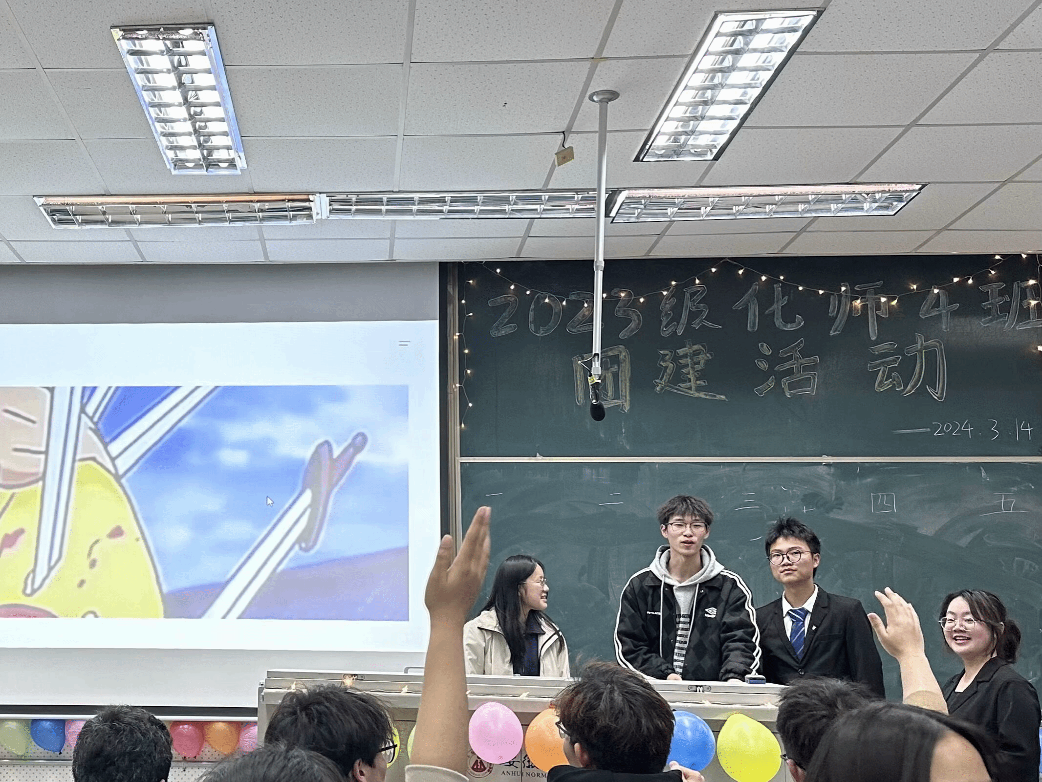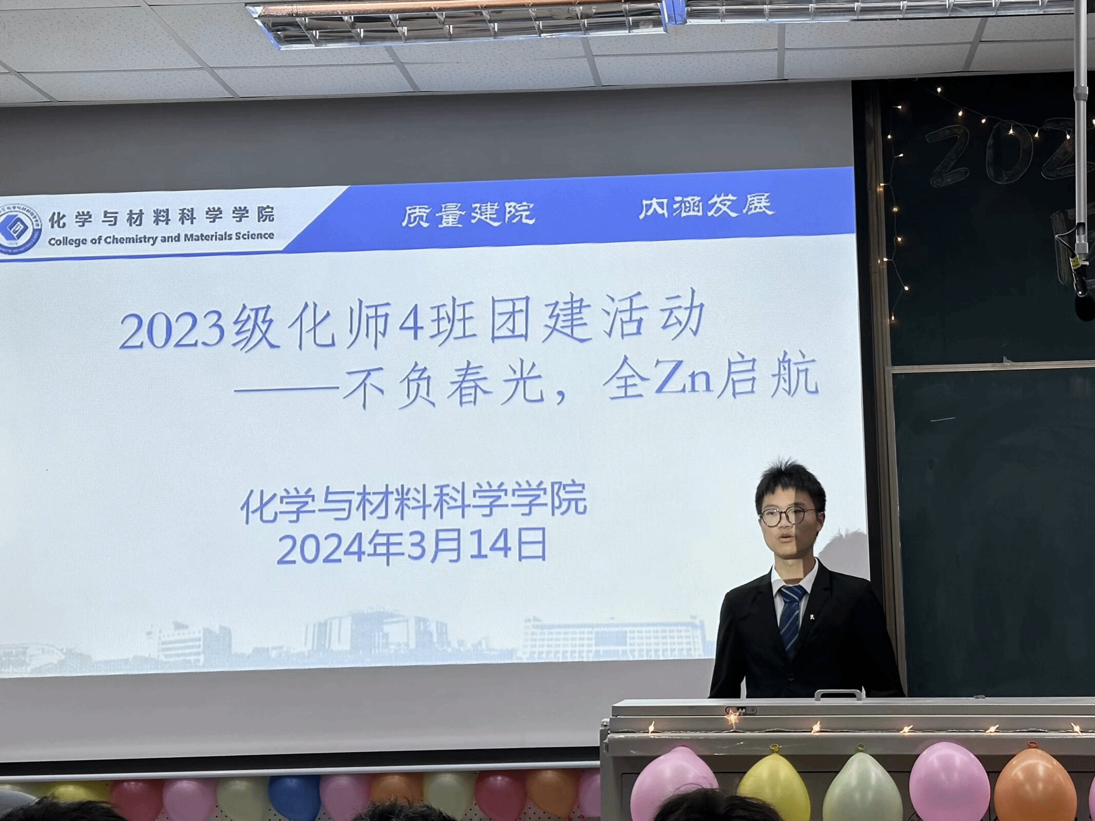 王涵) 为提高班级凝聚力,增强同学们之间的团结意识,3月14日晚,2023级化师4班在行知楼7号楼401教室举办了主题为“不负春光,全Zn启航”的新学期的第一次团建活动。本次活动由团队活动和自由活动两个环节组成,由辅导员王霞老师和2023级化师4班全体同学参加。