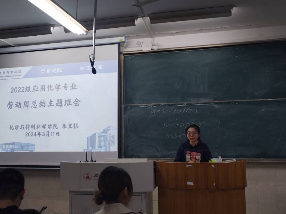 朱文棋)2024年3月11日晚上七点,2022级应用化学专业在1号楼602教室召开了劳动总结交流会,对为期一周的劳动时光做了详细的记录和回顾,会议由辅导员朱文棋老师主持。