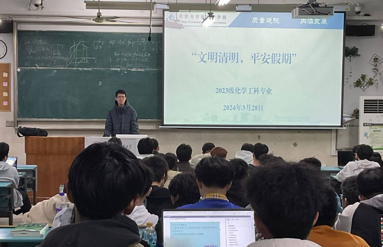 为切实做好清明节放假前的安全教育,让同学们度过一个平安的假期,确保学生人身和财产安全,3月28日,2023级化学工科专业开展了以“文明清明,平安假期”为主题的班会,班会由辅导员梁成主持。
