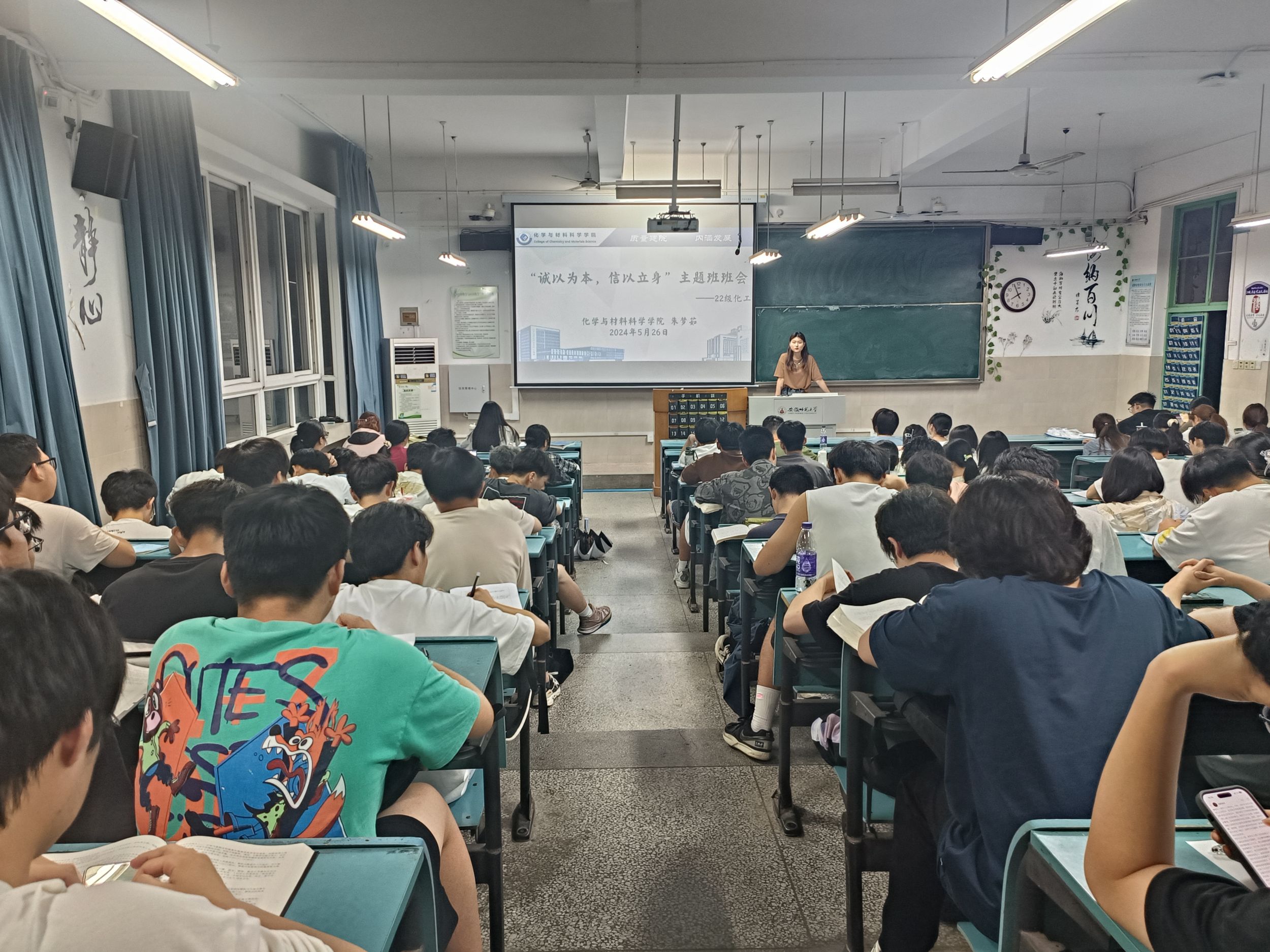 郁妍)为了进一步提升大学生的诚信意识,培养良好的道德品质,2024年5月27日晚上,化学工程与工艺专业在2号楼304开展了诚信教育主题班会,本次班会的主持人为辅导员朱梦茹老师。