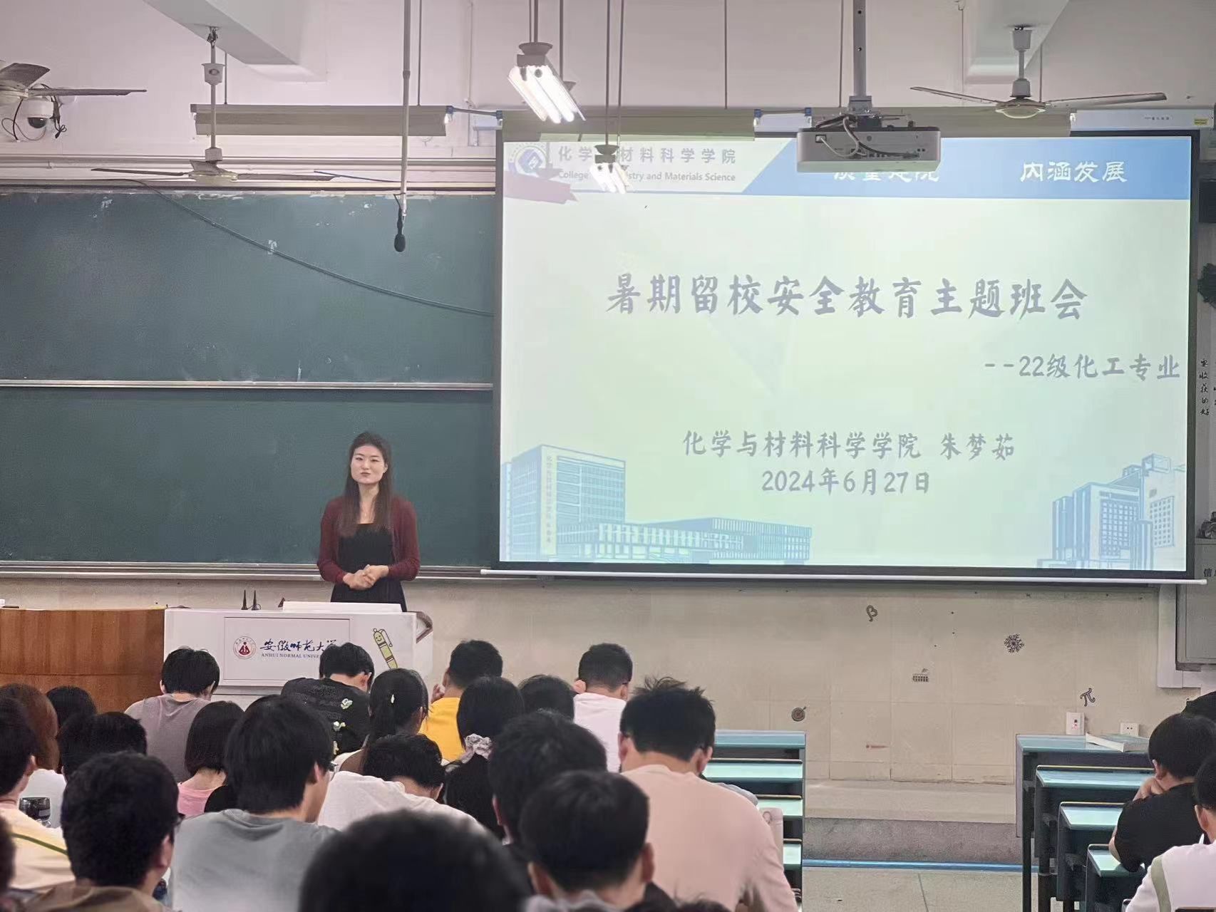 汤雷)为增强暑期留校学生的安全意识,保障学生的生命财产安全,化学工程与工艺专业一班于2024年6月28日下午在1号楼303召开了暑期留校安全教育班会。