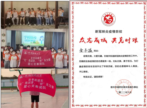 她积极地将服务社会的理念付诸实践,在大学一年级的暑假期间,她加入了名为“化雨润芽,材风为蕾”的爱心支教团队。这支团队前往了安徽省阜阳市颍上县,在那里她积极投身于教育工作。在疫情防控的关键时期,她主动承担起了社区志愿服务的责任,累计的服务时长超过了200小时。她通过这些实际行动,深刻地诠释了作为一名党员的责任与担当。