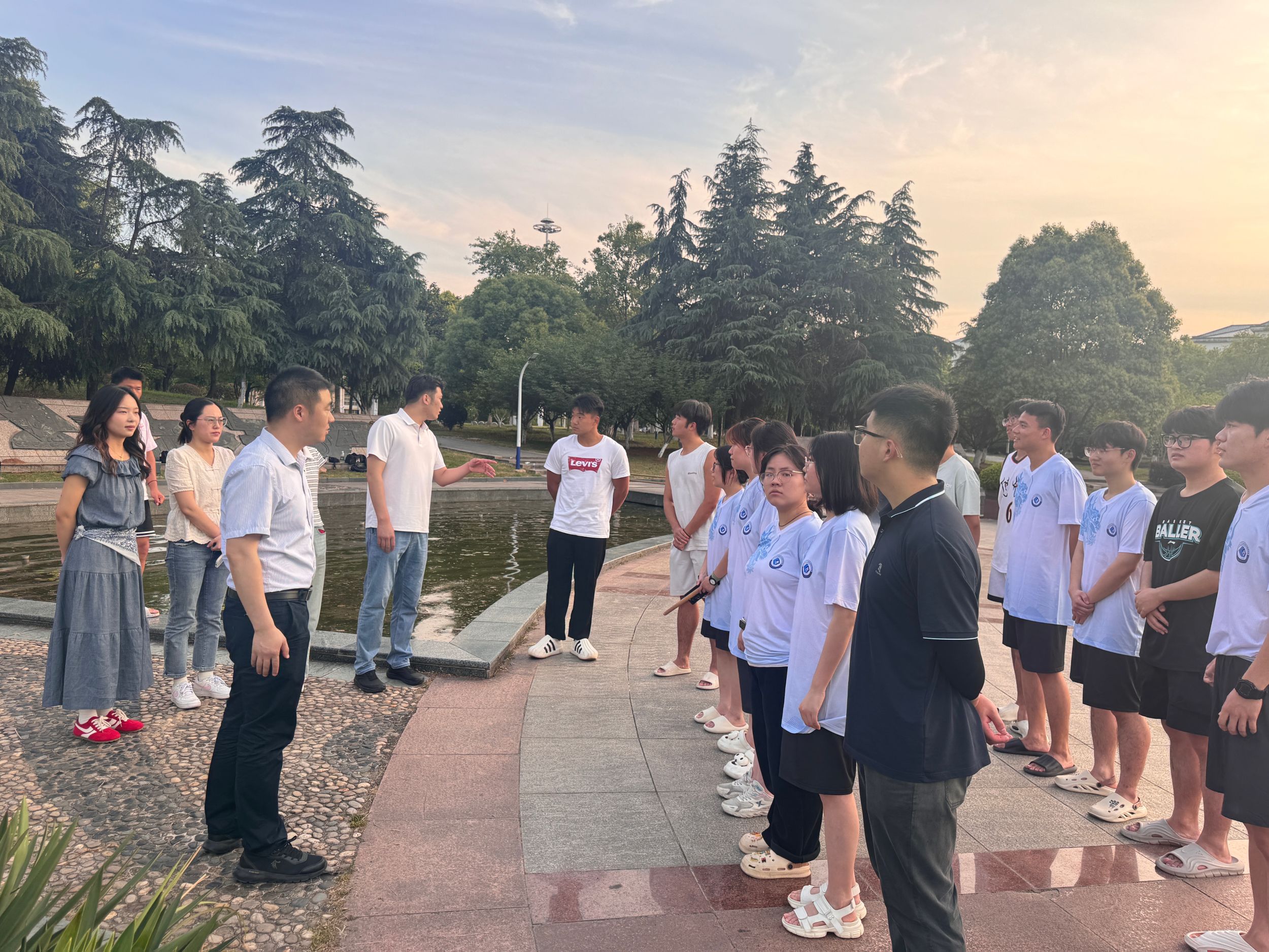 党委副书记李古州、团委书记梅冠东、团委副书记王霞、辅导员王芳、梁成、杨洋,来到龙舟队训练处为运动员带来关怀并表达对学院龙舟队获奖的信心,激励运动员不畏艰险,勇往直前。训练期间,队员们不畏烈日,在灼人的日光下反复打磨划桨节奏、强化团队默契,力求以最佳竞技状态迎接这场水上较量。