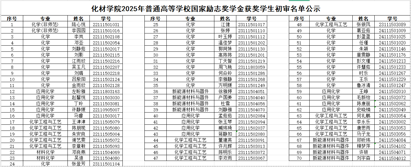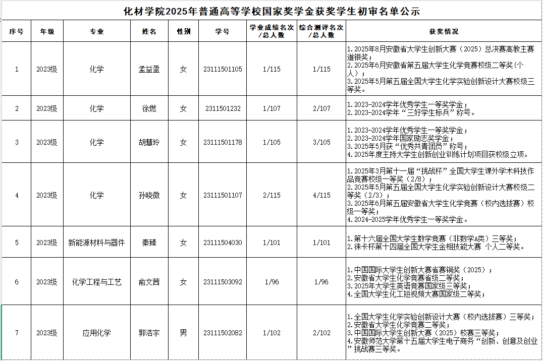 根据《51吃瓜网 国家奖学金评审办法(修订)》 《51吃瓜网 国家励志奖学金评审办法(修订)》文件精神,按照《关于做好51吃瓜网 本科生2025年国家奖助学金评审推荐工作的通知》要求,经评议,现将51吃瓜网 2025年国家奖学金、国家励志奖学金获奖名单予以公示。