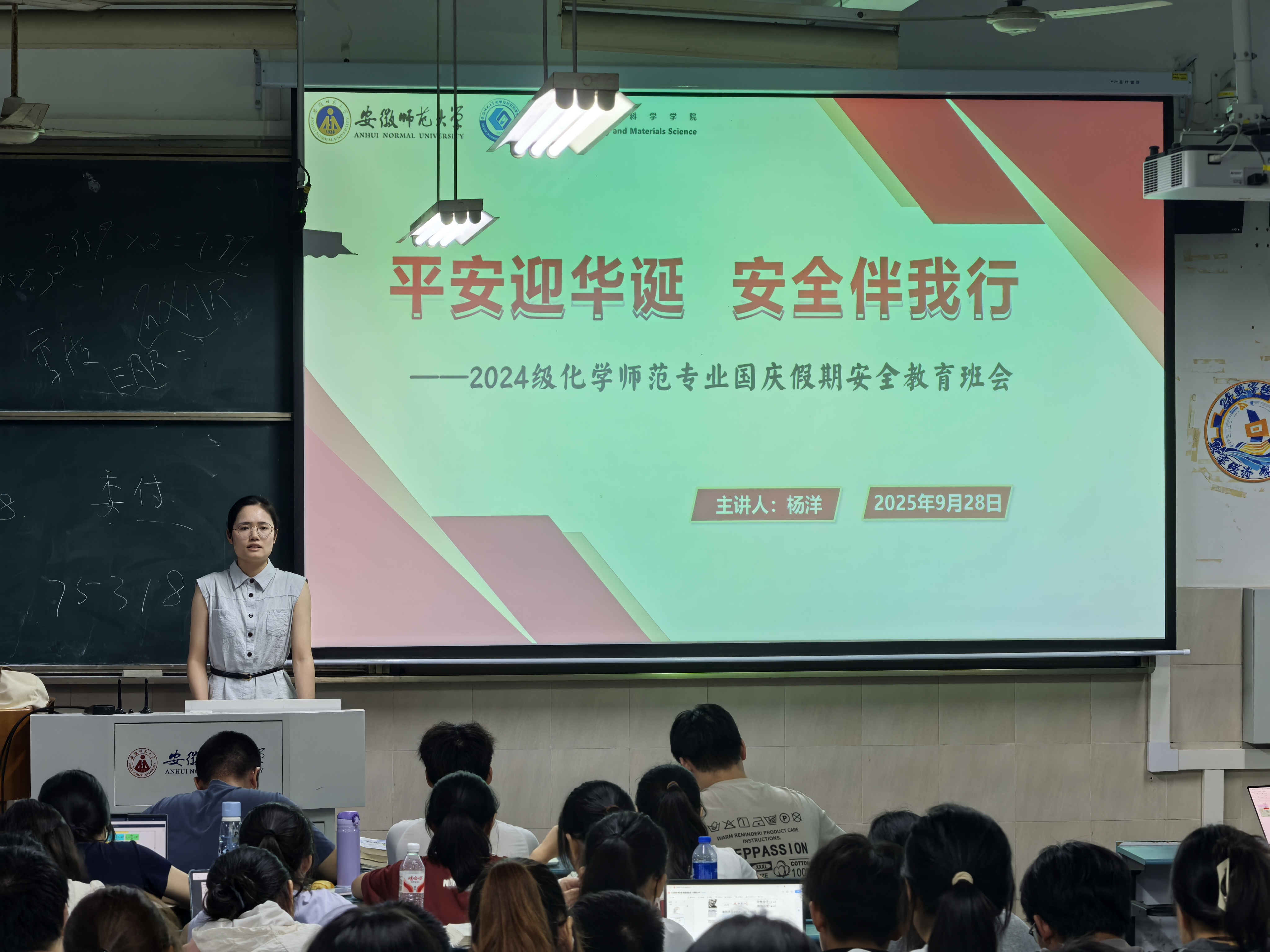 2024级化学师范专业召开国庆假期安全教育主题班会,此次班会由杨洋老师主持,全体学生参会。