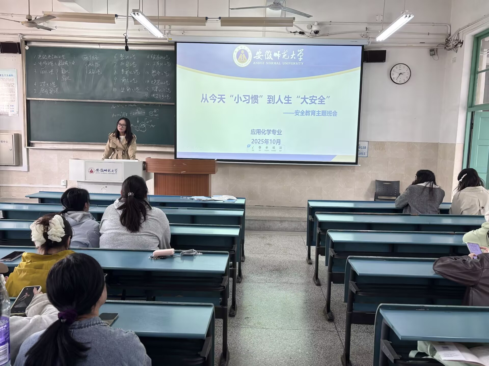 辅导员朱文棋于2025年10月29日下午组织召开2022级应用化学专业全体学生安全教育主题班会。