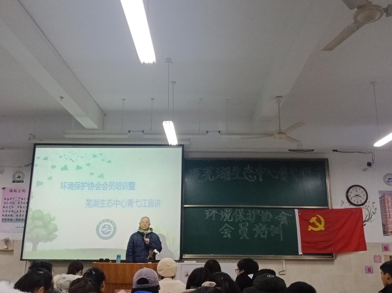 弘扬生态文明,共建绿色家园。2018年12月8日下午,由环境保护协会主办的18-19学年第一次会员培训会于花津校区行知楼2010308教室如期举行,环境保护协会指导老师宫世国教授以及来自芜湖生态中心的工作人员作为嘉宾出席本次活动,应邀前来对第21届环协骨干及会员进行讲座培训。
