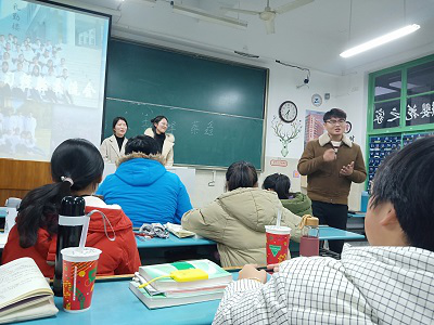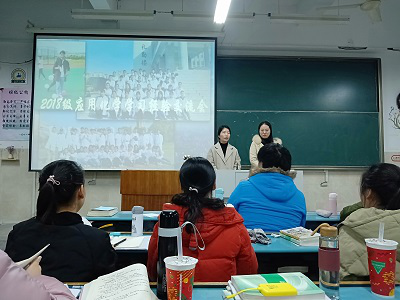 辅导员陶勇老师首先总结了期中考试的情况,接着请出两位学姐,为同学们解答学习上的各种问题。同学们踊跃举手提问,曹玉昆同学也向大家分享了自己的学习经验。