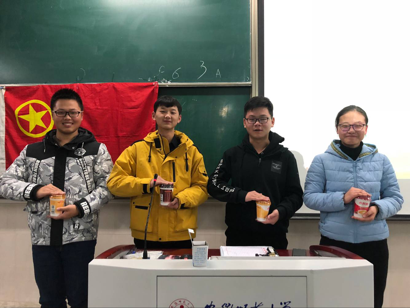 最后,在组织委员组织下,同学们进行了团课知识竞赛,同学们踊跃参与,对于表现突出的四位同学有些小礼品赠送,鼓励同学们积极参与班级团建活动。至此,线下青年大学习活动圆满结束。