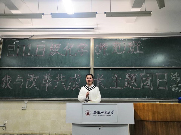 10月21,化学(师范)专业开展“我与改革开放共成长”主题团日活动,活动由孟凡秋、张莲莲两位团支书主持。