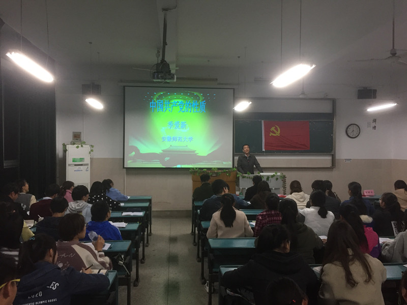 本网讯(党课班 王思源)11月17日晚,51吃瓜网 第23期入党积极分子培训班开班典礼在行知楼如期举行,校党委组织部部长季爱新,院党委书记、分党校校长汪俊武,51吃瓜网 教授吴华强,党课班班主任老师王国良、副班主任王雨兵出席本次开班典礼,典礼由王国良老师主持。 开班典礼在庄重雄伟的国歌声中开始,首先由王雨兵老师宣读培训班班委任命及班级管理制度,之后指导老师吴华强汇报了本学期党校工作安排,接着22期优秀学员邓传玉发言,强调了作为入党积极分子的身份意识,要坚定信念,加强理论学习的同时联系实际,做同学们的表率,在同学之中起到模范带头作用。随后23期学员代表郝艾婷做了关于党课学习的发言,她代表全体学员表明态度,要主动学习,自主学习,严守纪律,加强自我约束,时时刻刻以党员的标准要求自己。最后汪俊武老师讲话,塔肯定了学员的热情,对所有入党积极分子表达了深切的期望,赢得热烈掌声。 第23期入党积极分子培训班第一讲由校党委组织部部长季爱新老师主讲,季爱新部长从政党概念切入,让学员们先对中国共产党有了大致的认识,随后季部长从党的性质中的两个先锋队,一个领导核心,三个代表以及一个最终目标四个部分分别对党的性质进行细化的讲解,让学员们对党的性质的内涵有了充分,系统的了解,其中对党“顺民意,聚民力,谋民利”理论阐述结合实例具体分析,说明我党发生发展的历史必然性,让学员对党有了更加理性的认识,对党有了属于自己的思考。 本次培训使同学们看清了未来努力的方向,进一步了解了共产党员的责任和义务,让学员的受益匪浅也坚定了同学们积极向党组织靠拢并加入中国共产党的决心。