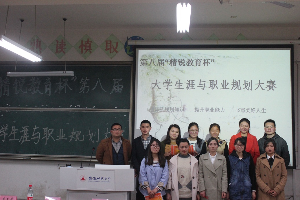 本次大赛中选手按照抽签顺序依次展开汇报,评估内容分为选手讲说和评委提问。首先,来自2015级应用化学鲁陈琳同学,结合自身性格特点、学习环境氛围,展现大一学生对未来的把握和畅想。随后来自2013级化学专业的3号选手于艺哲同学从自我评估、环境分析、大学生涯规划、职业规划等多方面像我们展示其自我认知和对环境认识,严谨而切合实际的规划赢得大家一直赞同。随后,来自14化学专业的韩笑同学,结合其家庭环境分析和自我认识提出其“三尺讲台”的教师梦,融入其作为学生干部和上次参赛的经历,阐述优势,反省不足。最后,来自2013级材料化学的胡雪纯同学,以其研发新型化妆品之梦为主线,阐述其为实现梦想在大学期间计划与努力,表达其对现代互联网微商的理解,介绍其社会实践经历,恰当回答评委所提出问题,赢得大家一直好评。选手汇报结束后,程紫丹老师进行总结发言。他提出大学生涯与职业规划的必要性,对各位选手的表现做出评价,提出大学生涯与职业规划的方法思路,解答学生心中疑惑。最后各位评委为各位获奖选手有序颁奖。