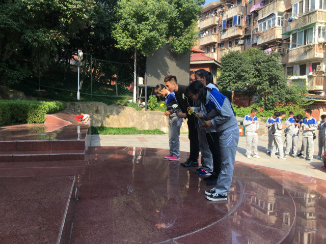 经过半个多小时的车程,大家来到了王稼祥纪念馆。在耀眼的日光下,烈士王稼祥的雕像显得尤为高大庄重,本次仪式由团支书吴飞同学主持。仪式第一项,由辅导员老师发言。王老师强调此次活动旨在缅怀先烈,牢记历史,让同学们学会珍惜当下美好的生活,肩负起时代赋予我们青年的责任,做一名合格的共青团员。同学们认真聆听,深受鼓舞。仪式第二项,团支书吴飞同学带领大家重温入团宣誓词,一字一句,掷地有声,展现师大学子良好的精神风貌和充满朝气的青春形象。仪式第三项,吴飞同学向全体同学一一发放团徽,颁发团员证,让同学们再次深知肩上沉甸甸的责任,体会到作为一名共青团员的使命感。仪式第四项,为烈士王稼祥献花。辅导员王老师首先做出表率,带领大家献上表达追思与敬意的菊花,缅怀先烈为我们和平生活做出的巨大贡献。仪式第五项,团支书和四名团小组组长领唱团歌《光荣啊,中国共青团》,悠扬有力的歌声久久回荡在天际,响遏行云。