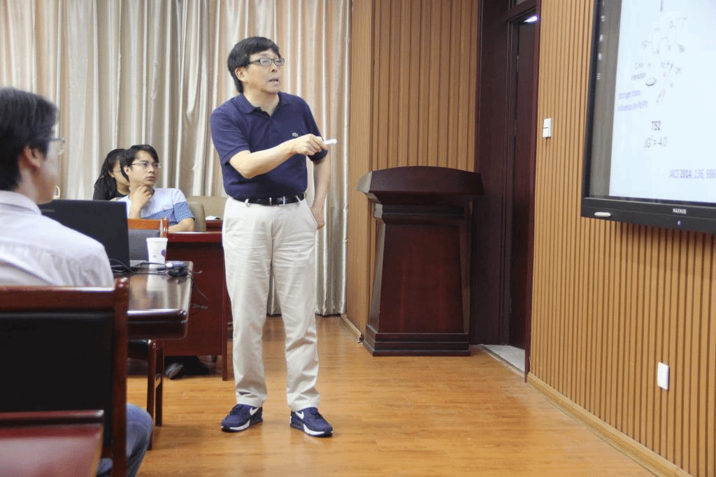 汪小泰教授作了题为“Doing Chemistry In Silico: Designing Molecules and Understanding Catalysis”的学术报告,报告详细介绍了其课题组近几年通过理论化学手段在金属有机化学领域的研究进展。设计了具有超短金属键的新奇结构和潜在有趣反应性的有机金属配合物。通过理论计算研究了包括均相反应、立体选择性烯烃复分解反应、碳-碳偶联和C-H活化等反应的机理,阐释了过渡金属催化在合成中起重要作用的反应。报告结束后,师生对汪教授工作感兴趣的地方进行了深入讨论和交流。与会师生对通过理论手段研究重要的反应机理、新奇结构的设计产生了深厚的兴趣并有了深入的了解。