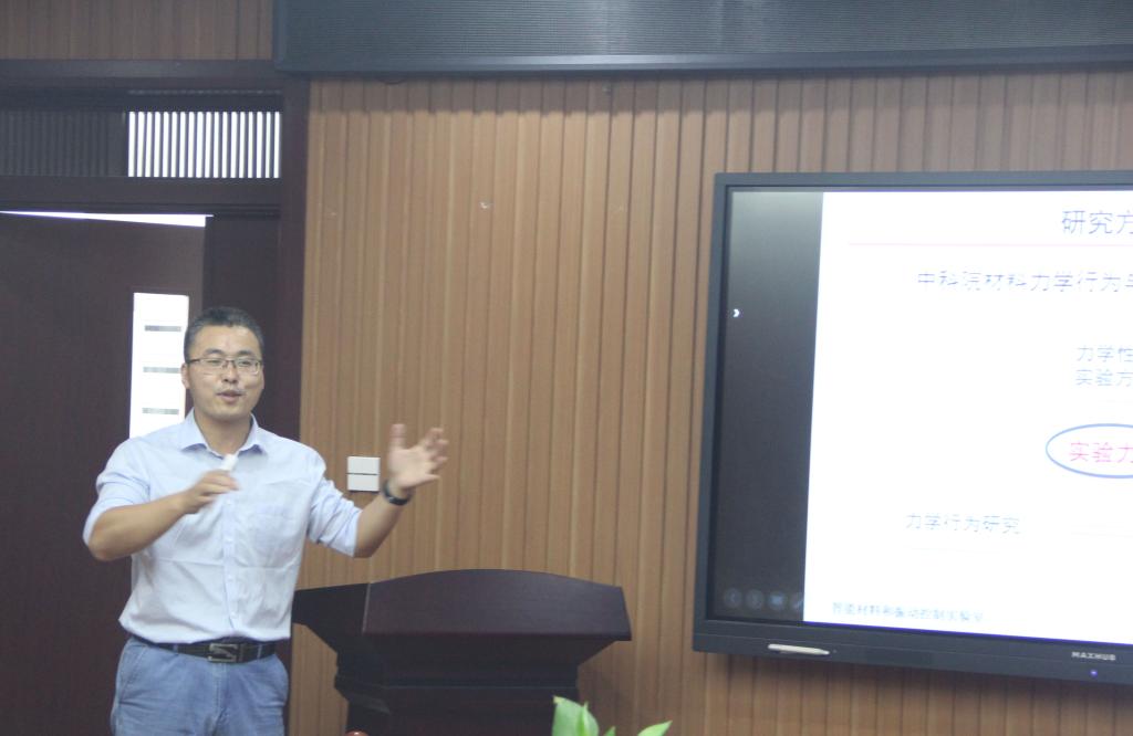 宣守虎教授作了题为“剪切增稠复合材料的力学性能设计”的学术报告。宣教授从剪切增稠的粒子簇理论切入,深入浅出地阐述了国内外对剪切增稠现象的不同机理解释,并且在大量工作的基础上设计出了剪切增稠粒子的硬核软壳微观模型,确定了调控剪切增稠液临界切变速率和最大黏度的因素。以此为出发点,宣教授团队对传统的剪切增稠液和剪切增稠胶的材料设计、性能优化以及测试手段等方面开展了大量的创新性工作,研制了兼具防护性和力学传感的材料和产品。会后,宣教授与与会进行了互动讨论,解答了师生的疑惑。宣教授的精彩报告不仅引起了大家对流变学这一领域的关注,而且拓展了学生的专业知识。