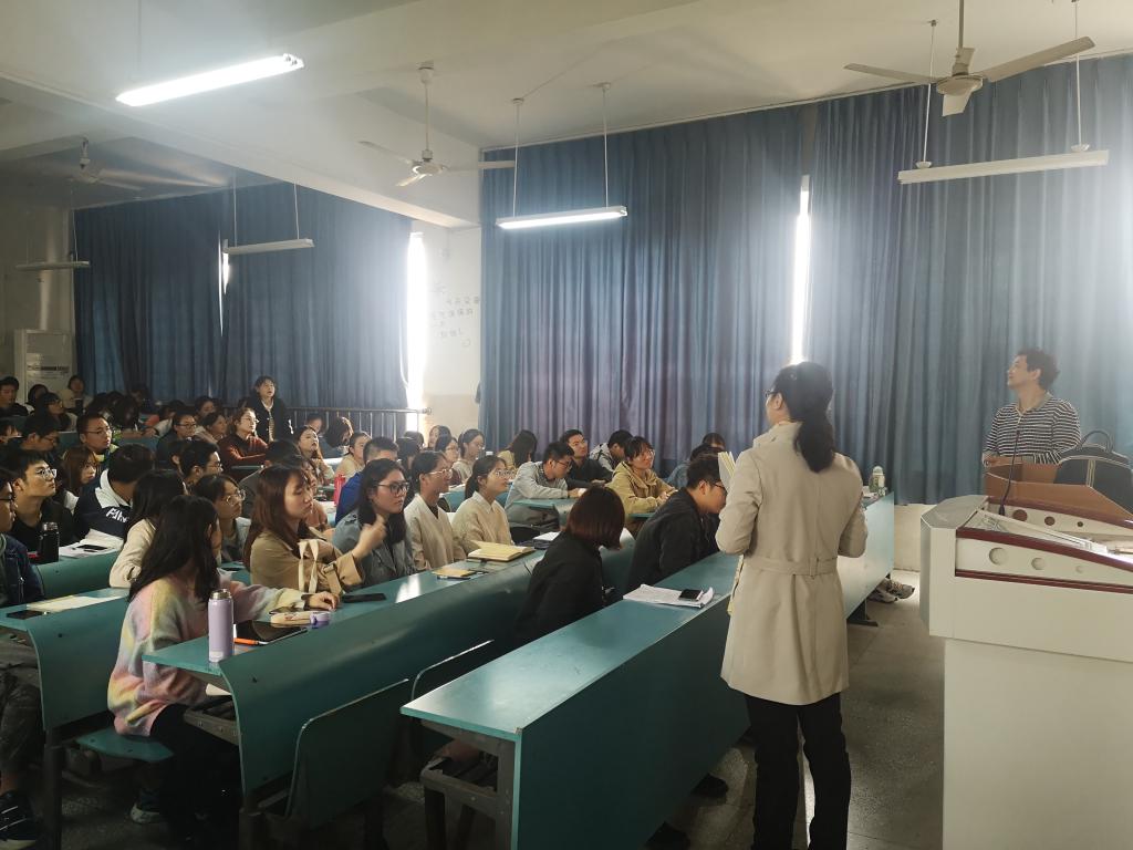 报告开始,一道趣味题目引出了试题的综合性、基础性、应用性和创新性。试题中蕴含了多种多样的情景,我们可以对其进行详细分类和研究。紧接着,徐泓老师重点提出对试题的研究应分为解题、讲题、评题和命题四个过程,这也恰恰是我们对试题理解的四个水平,解题应“从疑难处入手,夯实必备知识”;讲题应“在分类中拓展,提升关键能力”,评题应“在数据中求源,关注学科素养”;命题应“在情景中创新,渗透核心素养”。从这四个水平入手,徐泓老师带领大家进行了详细分析,为我们理清了试题研究的脉络与方向。报告中频繁抛出的问题促使师范生不断反思和思考。最后,徐泓老师耐心解答同学们的疑惑,使大家对于未来的发展有了更深刻的认识和思考。
