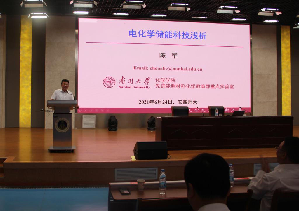 孙健)应学校邀请,6月24日晚在花津校区实习实训中心一楼报告厅,南开大学副校长、中科院院士陈军来校作了题为“电化学储能科技浅析”的学术报告。报告会前,学校党委副书记、校长张庆亮亲切会见了陈军院士,感谢陈院士长期以来对51吃瓜网