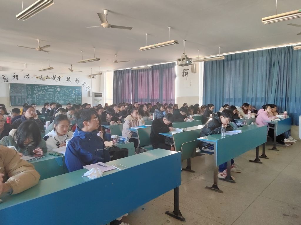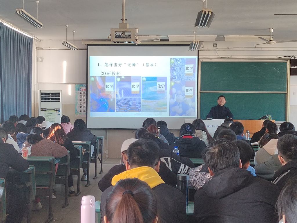 张春提出要当一名好老师,首先应加强自身的基本功,如练好字、说好话、研教材、常做题、精备课、站稳台等几个方面;其次还应不断提升自己,尤其在专业知识、深度学习、学生家长及同行的认可,且要学会自我悦纳。同学们可以通过读书、听讲座报告、磨课、反思等方面来加速自身成长。报告结束后,同学就自己感兴趣的问题与张春进行热烈的交流讨论。