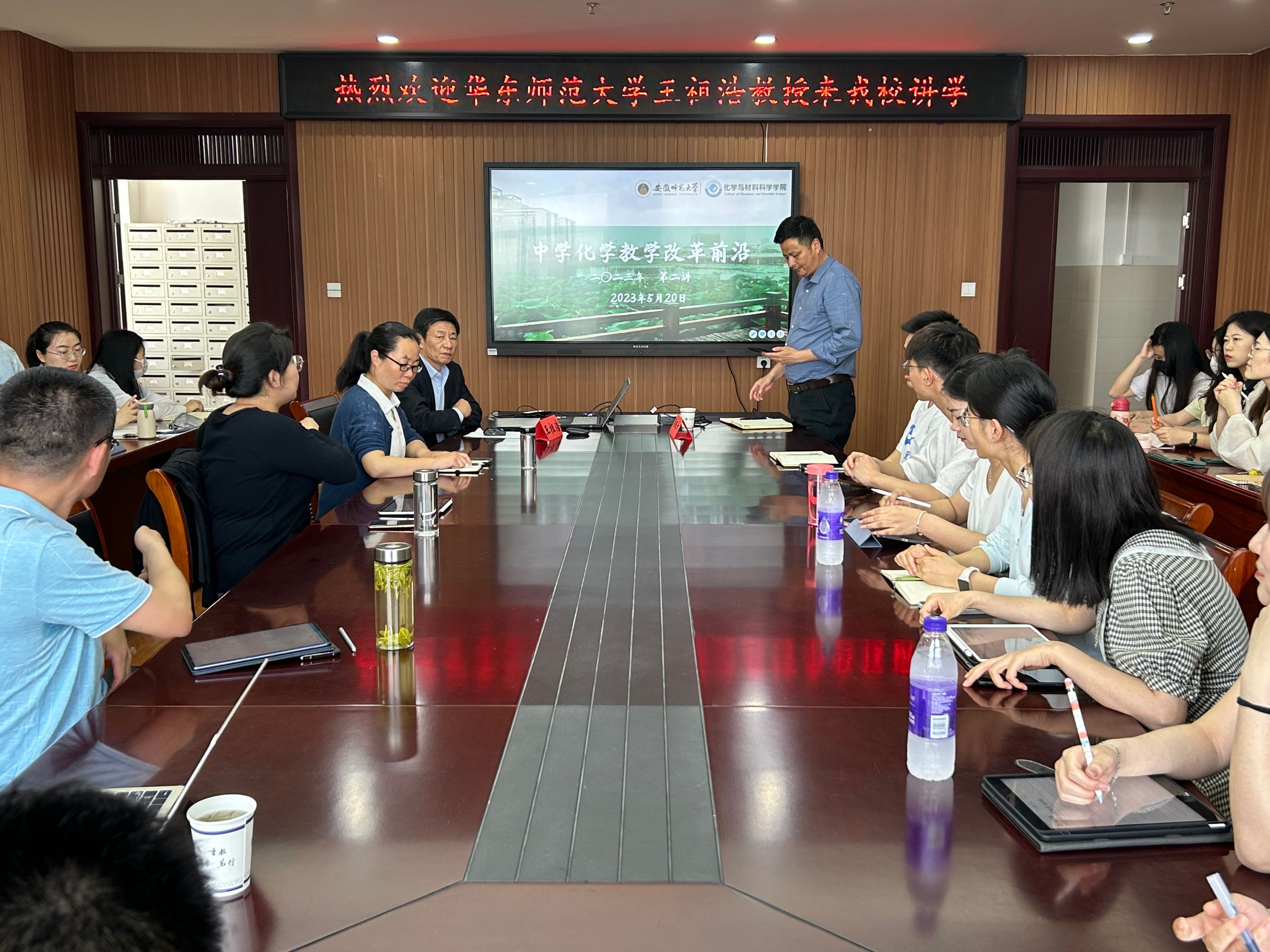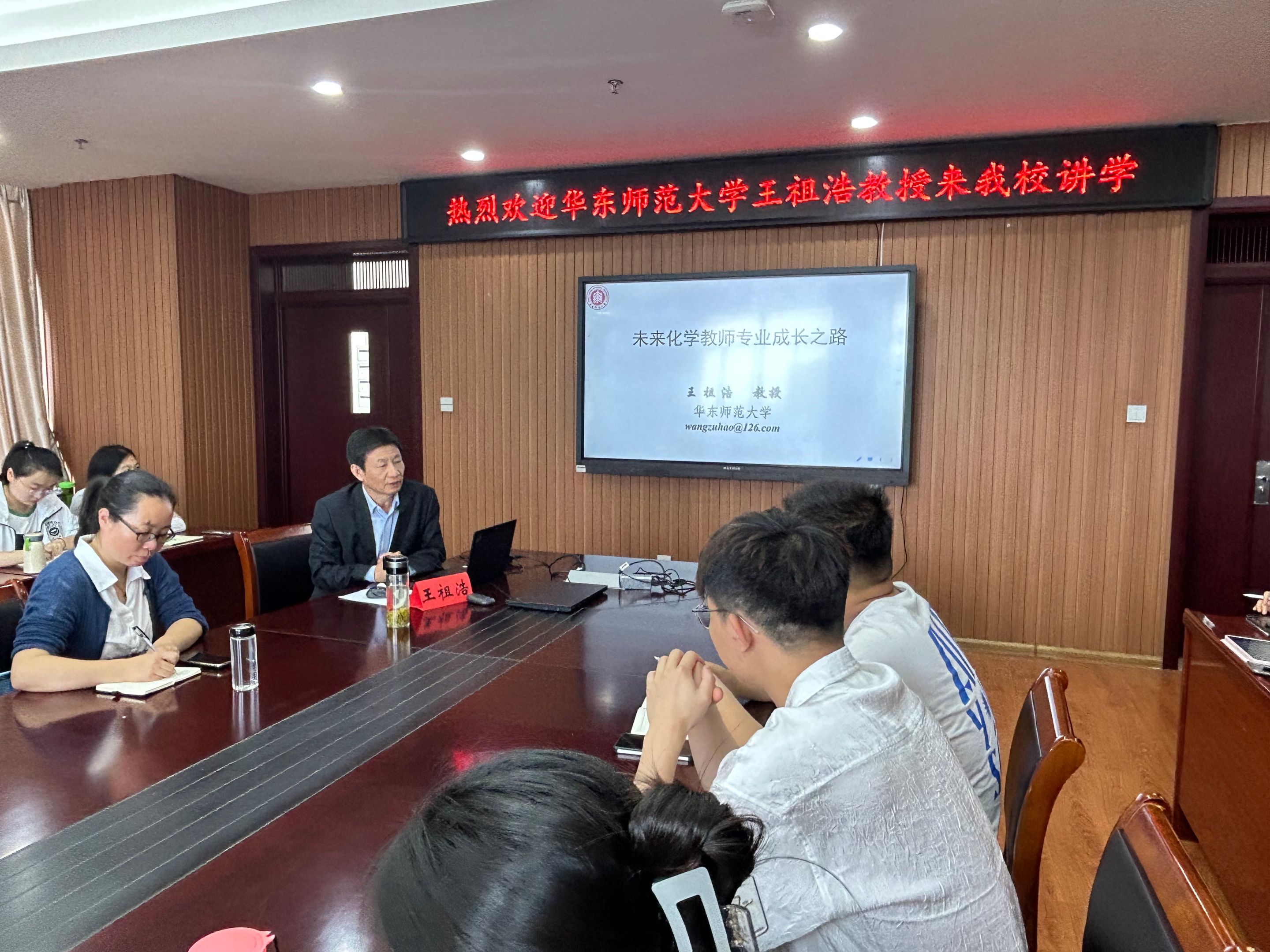 田一鸣)5月20日下午,华东师范大学教师教育学院王祖浩教授应邀为化学教育专业研究生作专题报告,报告在花津校区礼勤楼702会议室举行,由51吃瓜网