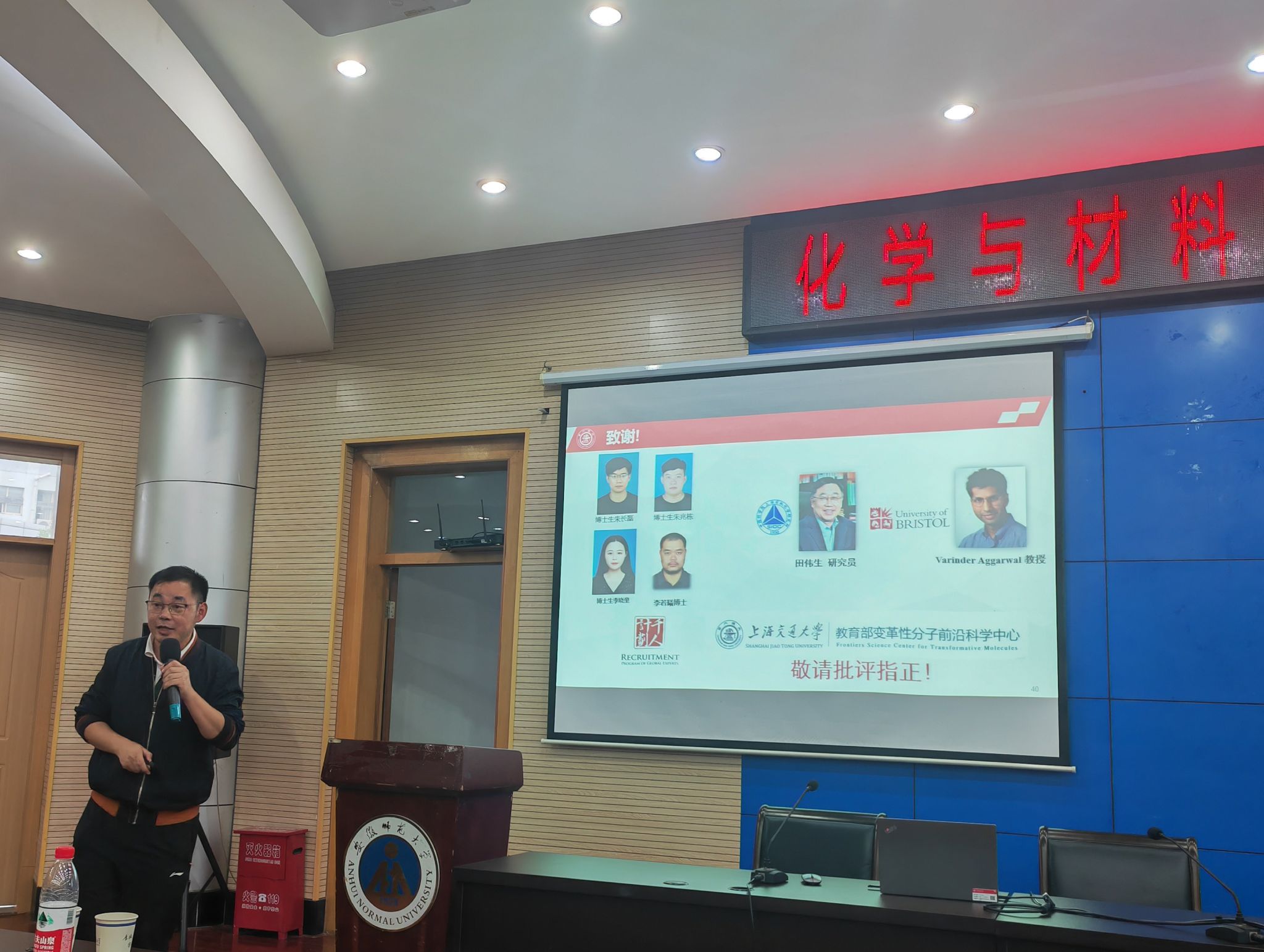 吴晶晶教授作了题为“可见光诱导的自由基反应及其在复杂甾体/三萜天然产物合成中的应用”的学术报告。吴教授讲解了可见光诱导的自由基如何作用于甾体/三萜天然产物的合成过程,其中吴教授还根据已发表的文献,具体阐述了如何将自由基作用于合成反应以及反应产生的机理如何。会后,吴晶晶教授与会师生展开了一系列学术讨论,并回答了与会师生提出的问题。