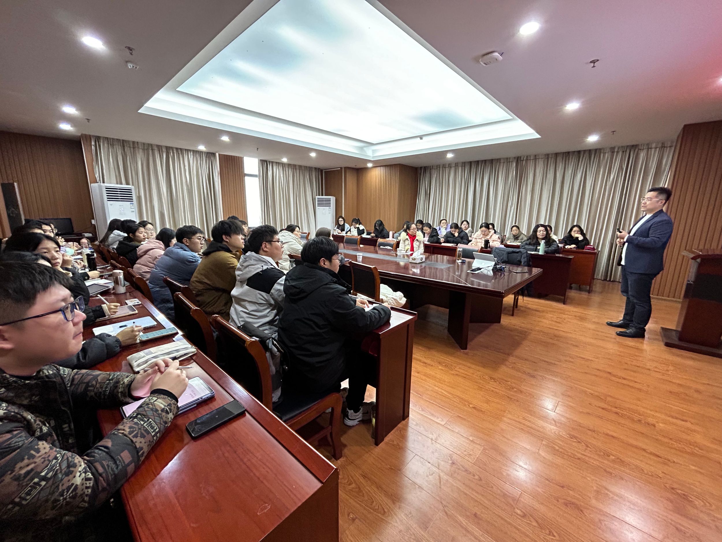 两个多小时的思维碰撞,既有命题研究的顶层设计,又有课堂实践的底层逻辑,更饱含教育匠人的育人情怀。讲座现场座无虚席,师生们全神贯注地聆听,认真详细地记录。此次讲座聚焦于教育前沿理念以及“三新”背景下的教学之道,为全体师生呈上了一场知识的盛宴,不仅为教育硕士的专业发展提供了新的思路和方法,也为未来的教育工作者提供了宝贵的参考和借鉴。