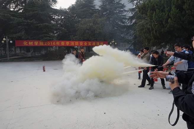 活动分为消防安全讲座和消防灭火实战演练两个阶段。第一阶段,崔世兵副处长以身边的校园火灾案例图片和视频导入话题,引发现场师生阵阵惊叹。他结合自身多年校园消防工作经历、通过大量火灾实例介绍了高校校园常发火灾类型、消防基础设施、火灾应急疏散、自救逃生技能以及初期火灾处置等相关安全知识,重点强调要时刻保持“安全工作重于山,消防工作无小事”的安全意识。崔世兵副处长的讲座内容丰富、案例典型、语言朴实,处处切中防火要害,句句敲响防火警钟。实战演练阶段,崔世兵副处长向参加活动的全体师生们详细介绍了灭火设备的使用方法,并现场指导开展了消防灭火实战演练。