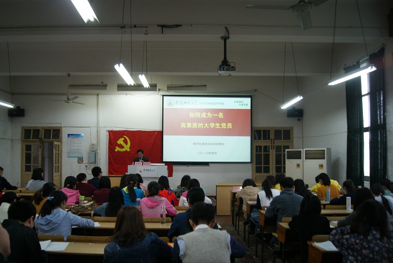 分党校)4月24日下午,校学生工作处处长台启权应邀为我院第三期学生党员培训班授课。本次授课主题为“如何成为一名高素质的大学生党员”,本期培训班100余名学员参与学习。讲座由分党校副校长余妍霞主持。