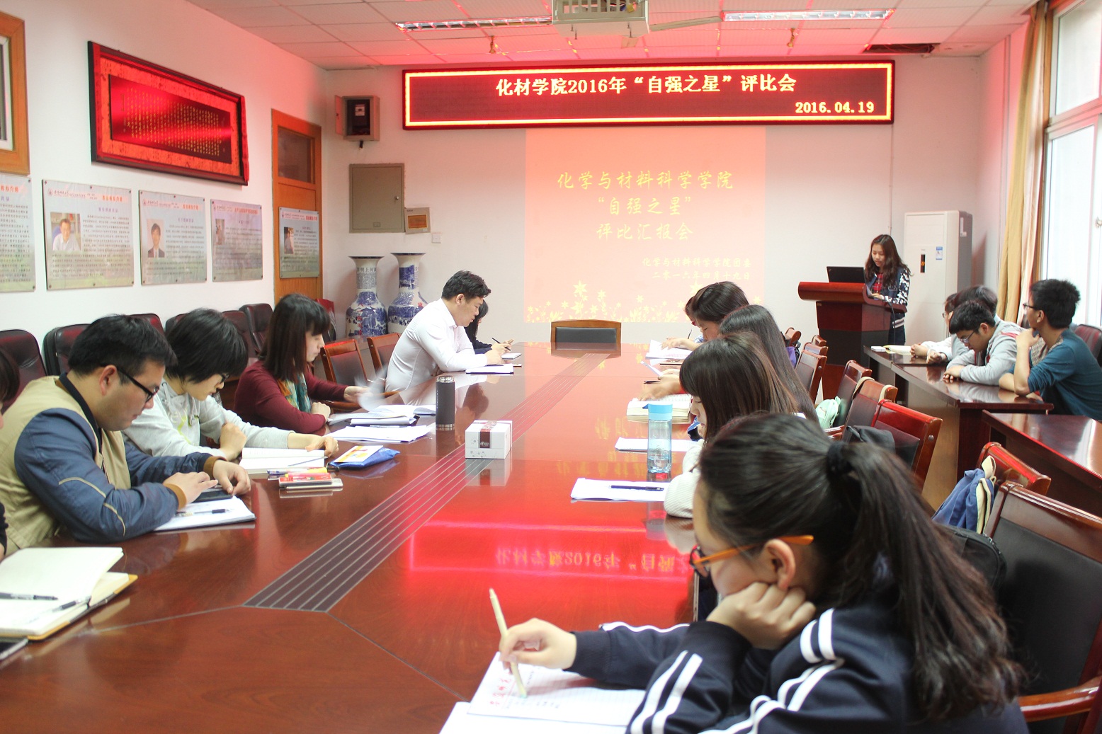 青年成长,榜样示范。为充分发挥先进典型的模范引领作用,学院组织先后“优秀大学生”与“自强之星”评选汇报,树立优秀学子典型,并在全院范围内通过事迹宣讲、新媒体展播等形式向各年级宣传典型事迹,传播青春正能量。第十四届全国“挑战杯”二等奖获得者耿竞,注重专业发展和科研创新,勤奋刻苦、追求卓越,先后获得安徽省“双创之星”、第十四届安徽省“挑战杯”特等奖以及国家奖学金等诸多殊荣。2012级材料化学专业张海宁在大学期间专业成绩始终第一,不仅学业、能力和素质全面发展,而且为人真挚、热心服务同学,现已成功保送复旦大学攻读无机化学专业研究生。他们的成长成才之路,将一直激励鼓舞着低年级的本科生勇敢攀岩、不断追求更高的目标。