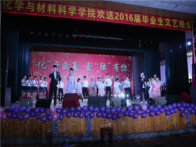 本次毕业生晚会从编排、选拔到排练,经过两个多月的紧张准备,得到了学院领导、老师和同学们的大力支持,最终给毕业生呈现出一台时尚与古典并存、欢乐与感动同在的晚会。晚会通过生动丰富的文艺语言讲述着浓浓的师生情、同学谊,此次晚会也正式拉开了毕业生文明离校的序幕。离开是为了再次的扬帆,祝愿2016届化材学子一路阳光,一生欢唱!