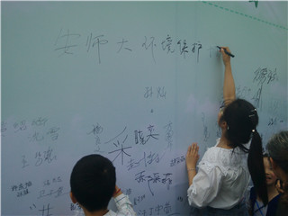 改善环境质量,推动绿色发展。6月5日上午,安师大环境保护协会受邀参加由芜湖市环保局、芜湖市广播电视台主办,市环保宣教中心、芜湖市万达广场协办的2016年芜湖市“六.五”世界环境日纪念活动启动仪式。活动仪式上,芜湖市汪华东副市长代表政府机关为启动仪式致开幕词。紧接着,各环保单位组织的精彩表演一一呈现、夺人眼球,而另一旁,附近各小学的孩子们绘制的百米画卷也同样吸引着路人驻足观看,环境保护协会排演的环保歌曲——地球,你好吗?以悠扬婉转的旋律、贴切环保的词意获得了观赏者的一致好评。