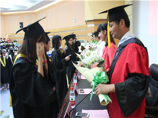 鹤发银丝映日月,丹心热血沃新花。四年的校园生活、四年的师生情谊在这离别之际化作依依的不舍与留念。毕业典礼现场,毕业班同学代表向现场老师献上一束鲜花,感谢老师四年的辛勤培育之恩。